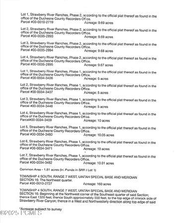 The Strawberry River Ranch located in Duchesne County encompasses 4,661 acres of some of the most beautiful river land in Utah. It reaches extensively along the Strawberry River between Starvation Reservoir and the Strawberry Pinnacles. Roughly 3,600 acres of the ranch encompass a large percentage of Indian Canyon to the east of the main ranch. Historically the ranch runs around 300 head of cattle, all on deeded ranch land. Additionally, the ranch produces hay. Included are five pivots, tractors, bailer, leveler, and other associated haying and ranch equipment. Recreationally, big game, upland, and waterfowl hunting opportunities are abundant and exceptional on the ranch. Included with the property are several deer and elk landowner tags. The Strawberry River has historically been considered a world-class trout water with the 16-mile section above the ranch, (tail water of Strawberry Reservoir,) being managed as a blue ribbon trout habitat by the Nature Conservancy and the State of Utah. This section was negatively impacted by the Dollar Ridge fire of 2018. Since then extensive efforts by the State has it recovering well on its way back as a world-class fishery. The 4 miles of river running through the ranch does not have public access. The ranch section of the river historically holds a healthy population of large brown trout, Rainbow trout, and Colorado River Cutthroat. In the fall, the Ranch sees Brown trout and Kokanee salmon spawning up from the adjacent Starvation Reservoir. The Ranch is primarily located between Strawberry Reservoir-- considered to be one of the top-producing lake fisheries in the state-- and Starvation Reservoir, another excellent fishery. The Ranch is a 1-hour drive time I-40 from Heber Valley-- currently one of the fastest growing municipalities in the country.