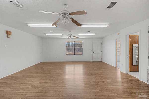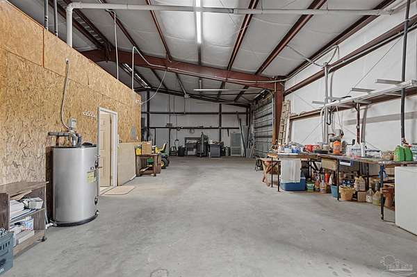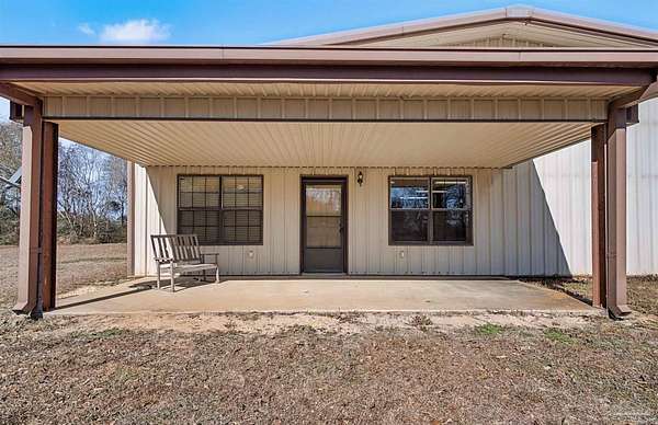 If you are craving a true PRIVATE residence, this one is for you! It is located on over three secluded acres, with a desired gated entrance and long winding driveway! The barndominium is 4,840 total SQFT, with 1,344 SQFT of it being heated and cooled. Featuring three bedrooms and two bathrooms, as well as a bonus room off the master bedroom, it has enough living space AND all the room you need for a workshop ~ covered storage for all your farm equipment and country toys ~ a workout area ~ and so much more! The kitchen, dining, and living areas are open. One bathroom has access to the insulated garage. The garage has three rolling doors with automated openers and two walk-in doors. There is a 260 SQFT front porch and an 800 SQFT carport attached to the back of the home. In the backyard is a pump house, a detached/removable shed, and another larger detached/removable outbuilding. Home has gutters, new flooring, and fresh paint! There is an additional 20.78 acres beside this property (with a section of woodlands between you to keep the privacy) if you want to build a new home and keep this as your guest house or if you have family/friends you want to live beside you. Seller has homeowner's insurance through State Farm and will provide an existing survey. All personal items are negotiable! Enjoy the peace + fresh air of good ole Jay, Florida and schedule your showing today.