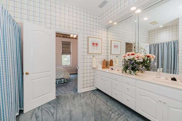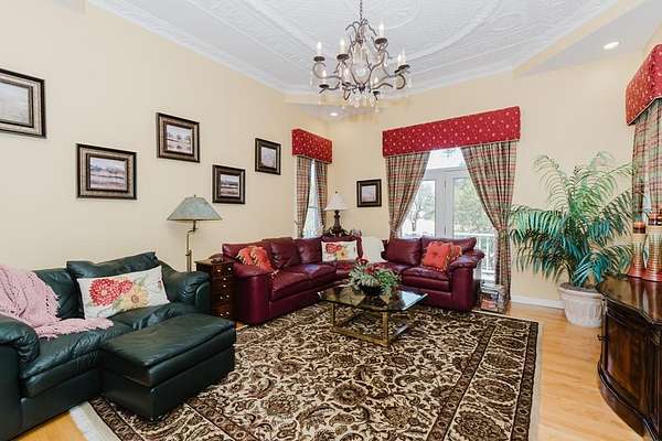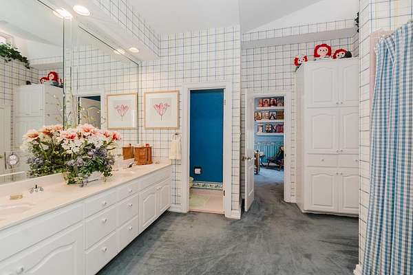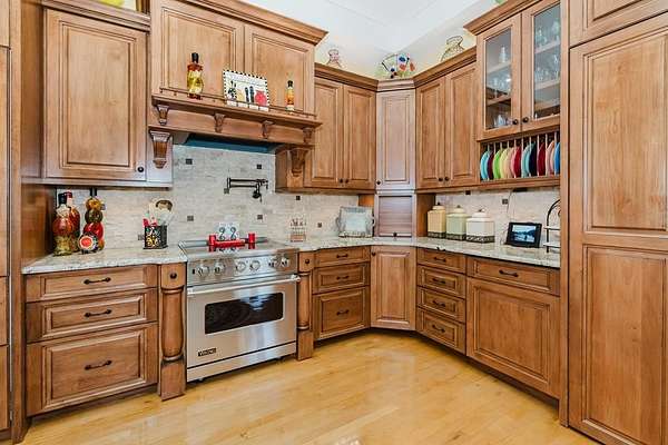 - Auto Garage Opener, Book Cases, Carpeting, Ceiling Fan(s), Drapes, Hardwood Floors, High Ceilings, Jetted Tub, Pantry, Reverse Osmosis-Owned, Security System-Leased, Shades/Blinds, Smoke Detector(s), Tile Flooring, Wet Bar