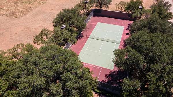 - Fence-Masonry, Fence-Metal, Fence-Partial, Guest Quarters, Inground Pool, Patio-Covered, Patio-Open, Spa/Hot Tub Outside, Sprinkler-Auto, Tennis Courts