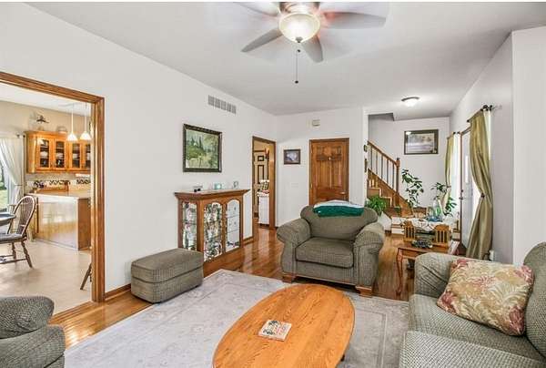 This beautiful two-story home showcases exquisite woodwork and hardwood floors in the living room, adding warmth and timeless character. Enjoy relaxing on the charming front porch-perfect for morning coffee or unwinding in the evening. Conveniently located just minutes from I-70, with easy access to shopping, parks, and only 30 minutes from downtown Kansas City, this home offers both comfort and convenience. Featuring 4 bedrooms, 2 full bathrooms, and 2 half bathrooms, this property provides plenty of space for everyday living and entertaining, all situated on a generous lot. The seller is offering a 1-year home warranty for added peace of mind. All square footage is approximate.
