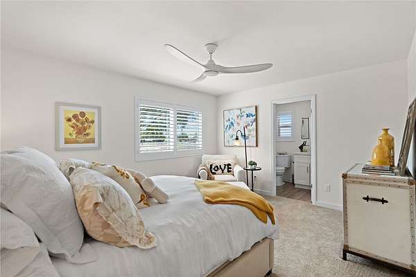 - Beamed Ceilings, Blinds Window Features, Ceiling Fan(s), No Interior Steps, Pantry, Shutters