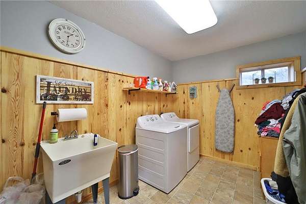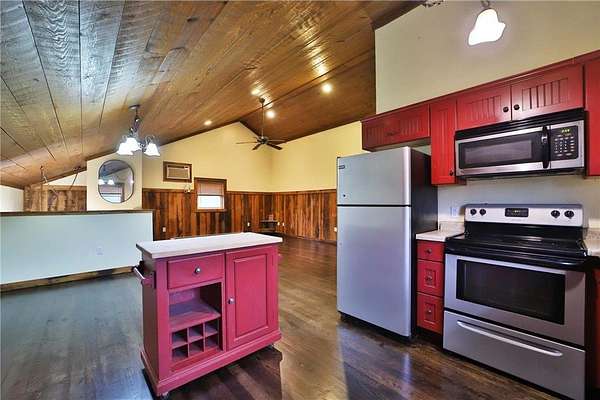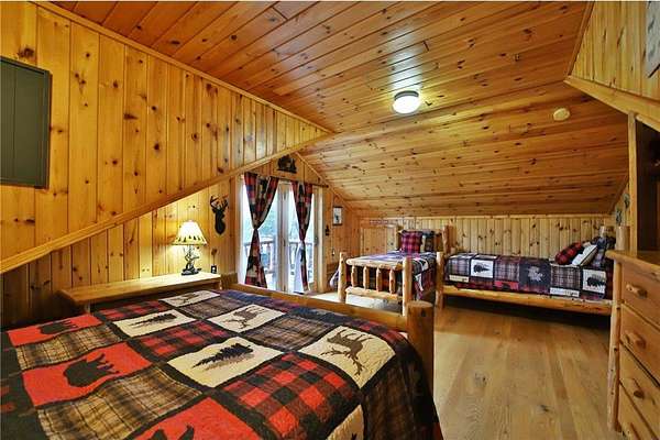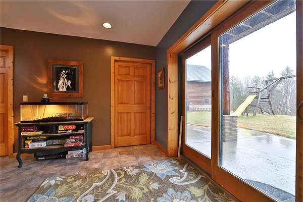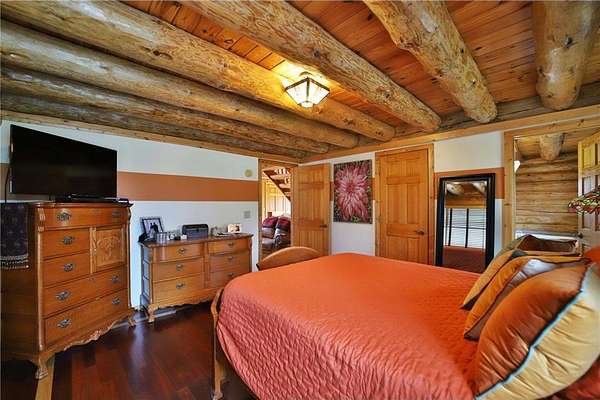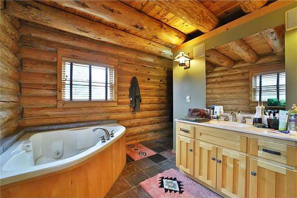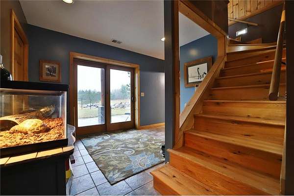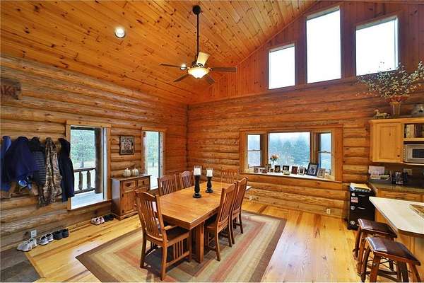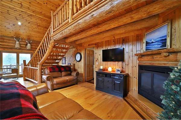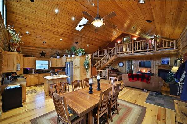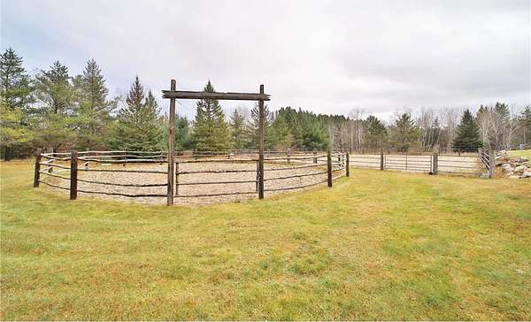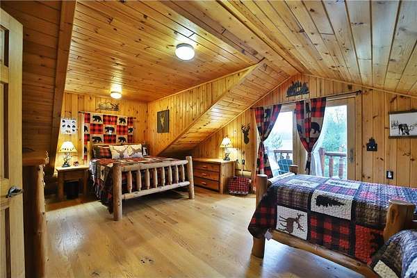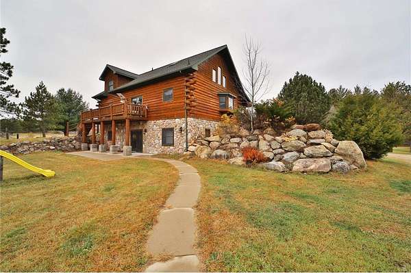 This well-built log home sits on over 10 beautiful acres bordering hundreds of acres of public land ideal for trail riding and hunting. A covered porch welcomes you into the open floor plan featuring vaulted ceilings, a kitchen with custom maple cabinets, stainless steel appliances, granite countertops, and a maple butcher block island. The cozy living room offers a gas fireplace, office nook, and ample storage. The main-level primary bedroom includes a walk-through bath with a jetted tub and tile shower, while log stairs lead to a loft bedroom with a private deck overlooking the pasture and barn. The lower level includes a bedroom, full bath, living area with epoxy floors, laundry, utility room, and private library. The detached garage is split into a heated two-stall section and a single-stall area with stairs to a two-bedroom plus loft apartment. Perfect for a hobby farm, the property includes 10 oak stalls, a tack room, blacksmith shop, hay storage, and a newer steel roof. The land is partially fenced with separate sections, its own well for two self-watering stations, an arena, training area, open pasture, wooded riding trails, and direct access to hundreds of acres of public land for recreation or hunting. The property is conveniently located just 10 minutes from Hackensack and near the Crystal Lake public access--one of central Minnesota's clearest lakes with excellent swimming. Bring your outdoor toys, horses and farm animals and make this awesome property home!