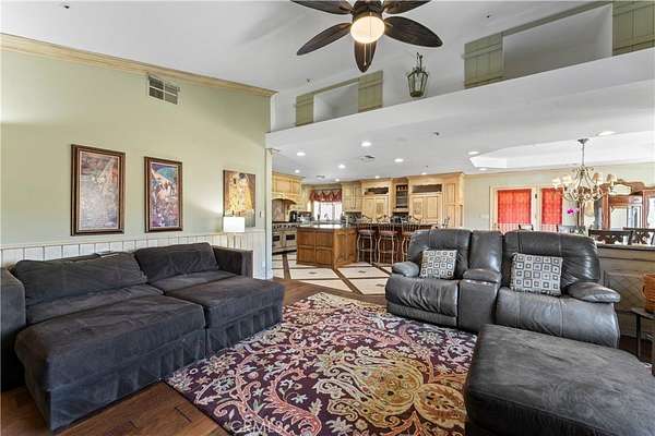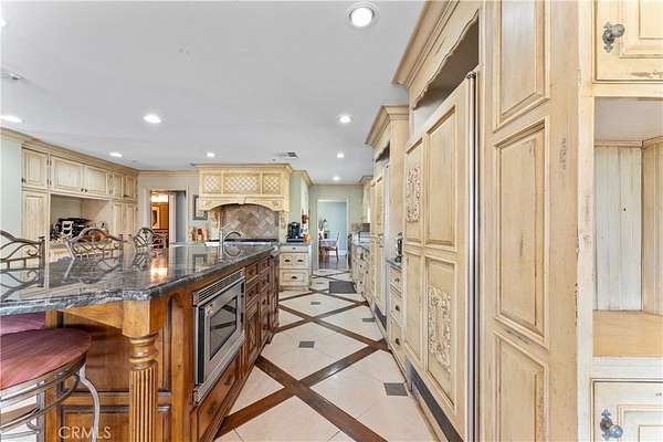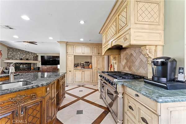 Step thru the Leaded Glass Front Entry to the Great Room with a modern Open-Concept Design that connects the Dining / Living Areas, while a Guest Bed Room just off to the side. The hallway features extensive cabinetry for optimal organization. Retreat to the Ultra-Luxurious Primary Suite with a Rock DBL-Sided Fireplace, Office Nook, and Direct access to your Private Backyard. Indulge in the Spa-Inspired Bath, complete with Granite Countertops, Custom Cabinetry, a Freestanding Soaking Tub, Dual Sinks, a Tiled Shower, and a Spacious Walk-In Closet. 3 Additional Beds and 2 Baths. Dedicated Laundry Room designed with ample Linen Storage, Folding Table, and Supply Cabinets. Culinary enthusiasts will be delighted by the Chef's Kitchen, featuring Antique-style Cabinetry, Granite countertops, Central Island / Breakfast Bar, Professional-Grade Viking Appliances, DBL Ovens, a Premium Sub-Zero Refrigerator/Freezer. A Walk-In Pantry offers Exceptional Storage. The Bright Breakfast Nook overlooks French doors to a scenic outdoor patio. Vaulted ceilings and a Rock Fireplace are in the Family room.