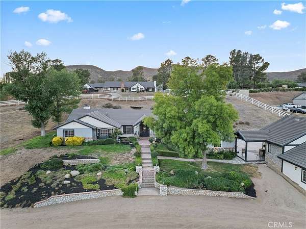 Welcome to this Exceptional Custom Agua Dulce Estate--a Luxurious Single-Story Sanctuary offering 5 spacious Beds and 4 Baths. This property features an attached ADU with a Private Entrance and dedicated parking, Ideal for guests, extended family, or Rental Income. The Living Area seamlessly transitions into the open Kitchen, 1-Bed & 1 Bath with Abundant Storage. The Detached Oversized 3-Car Garage has a (5'5" x 30' Storage Area) & an Expansive, Finished Building behind the garage (approx 23' x 30'). This versatile space can be tailored to your needs--Perfect for a Barn, Workshop, Office, Additional ADU, or more.