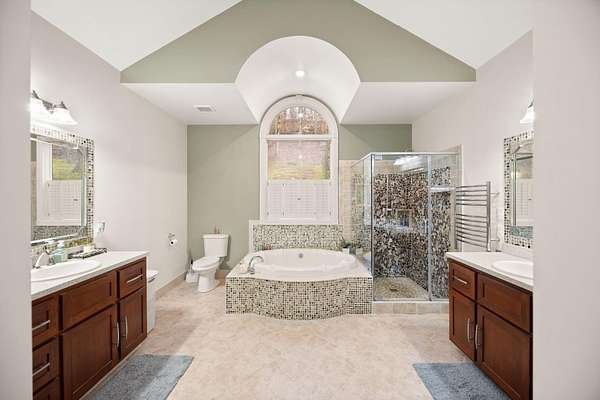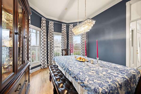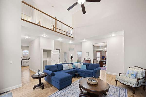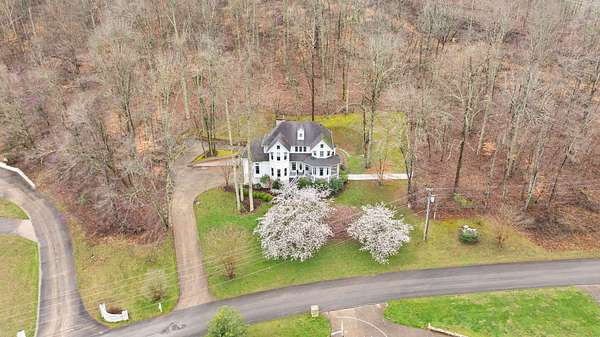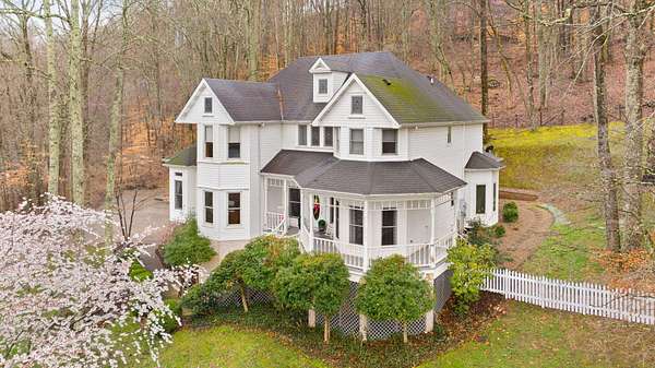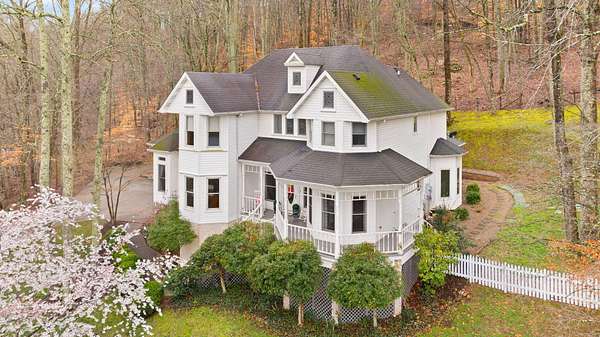 Rare Find! Stunning Victorian-style home offering over 5,000 sq ft on 6 acres, located in a desirable country club community-enjoy neighborhood amenities while still having the privacy you crave. This magazine-worthy property features thoughtful updates that beautifully showcase its timeless character and charm. The expansive three-level layout includes 5 bedrooms (plus bonus rooms), 4.5 baths, and a finished basement complete with a full kitchen-perfect for entertaining or multi-generational living. Interior highlights include hardwood floors, soaring ceilings, abundant natural light, a fireplace, elongated and transom windows, and skylights throughout. The eat-in kitchen is equipped with a wine refrigerator and double oven, and the home also offers a formal dining room. The primary suite features heated tile flooring and a heated towel bar for added luxury. Step outside to enjoy the wraparound porch, sunroom, and oversized patio-ideal for entertaining. Relax around the fire pit while taking in the peaceful sights and sounds of wildlife across your private acreage. Additional features include a 3-car attached garage (with golf cart bay), extra concrete parking, and a home security system. With sellers downsizing, this exceptional property is priced to sell-don't miss your opportunity to make it yours!