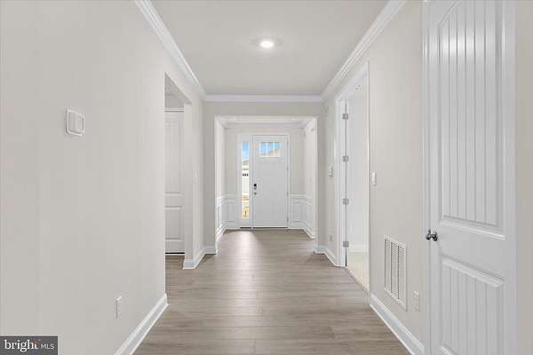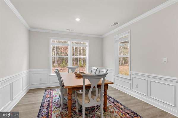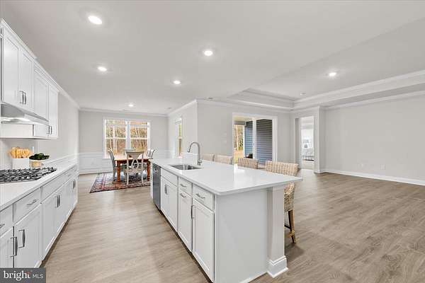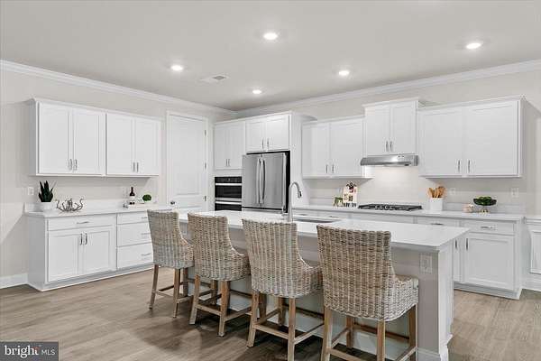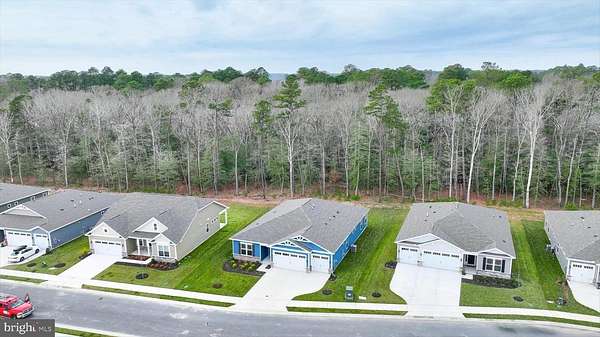 Welcome to this stunning 2025 new construction coastal contemporary home, ideally located near Burton's Pond and set on a premium homesite backing to preserved wooded land. Never fully occupied and with the builder punch list already completed, this residence is truly move in ready and offers the rare opportunity to enjoy new construction without the wait. Thoughtful design, refined finishes, and an exceptional setting come together to create a home that feels both elegant and inviting. The striking foyer immediately sets the tone with soaring ceilings, extra tall doors, a tray ceiling accented by crown molding, and classic wainscoting. From the moment you enter, your eye is naturally drawn through the home to the serene, wooded views at the back of the yard, creating an inviting sense of depth and connection to nature. Luxury vinyl plank flooring flows through most of the main living areas, while extra wide baseboard trim and recessed lighting throughout the home add a polished, upscale feel. The popular Wheaton floor plan is thoughtfully laid out to provide both functionality and privacy. To the left of the entry, a well-appointed bedroom and full bath with a tub offer comfort for guests. A designated office with French atrium doors provides a quiet and stylish workspace. To the right, a highly functional mudroom area features abundant cabinetry, and a quartz topped counter ideal for folding laundry, along with access to the spacious three car garage. This area also includes a powder room, linen closet, and a large laundry room equipped with high end washer and dryer on pedestals. An additional bedroom with an en suite bath is also conveniently located on this side of the home. The heart of the home opens into a gracious living area highlighted by a raised tray ceiling with crown molding, creating a warm yet elegant atmosphere. Extra-large sliding glass doors frame peaceful views of the wooded backdrop behind the home, filling the space with natural light and creating a seamless connection to the outdoors. Step outside to the rear patio, a peaceful retreat perfect for relaxing and enjoying the surrounding nature. The gourmet kitchen is a true showpiece, offering an oversized island with seating, abundant white soft close cabinetry, quartz countertops, a wall oven, gas cooktop, Whirlpool dishwasher, and stainless-steel appliances including a refrigerator with ice maker, built in water pitcher, and a versatile temperature-controlled drawer ideal for snacks or wine. A generously sized walk-in pantry provides ample storage for small appliances and essentials. The adjoining dining area, enhanced with crown molding and wainscoting, enjoys beautiful views of the backyard and the tranquil wooded landscape beyond. Privately tucked at the rear of the home, the spacious primary suite features a tray ceiling with crown molding and plush carpeting. Two large walk-in closets provide excellent storage, while the spa inspired en suite bath offers an extra-large walk or roll-in shower, dual quartz topped vanities, a linen closet, and a private water closet. This home is equipped with modern conveniences including a Ring doorbell, smart door locks, natural gas HVAC, a tankless hot water heater for endless hot water, and an irrigation system to keep the lawn lush during warmer months. Located within the desirable Headwater Cove community, residents enjoy resort style amenities including a beautiful clubhouse with recreation area and bar, fitness center, game room, outdoor pool, pickleball courts, and a welcoming community fire pit. Lawn care is also included. Just minutes from area beaches and the tax-free shopping, dining, and entertainment along Route 1 and in Long Neck, this exceptional home offers the perfect blend of coastal living, modern comfort, and everyday convenience.