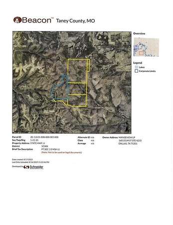 This is a prime investment opportunity area! Location of this property is remote, yet within a few miles of the vibrant cities of Branson & Hollister and Table Rock Lake. The property is near the Branson Airport with featured airline Frontier, Johnny Morris' Buffalo Springs Ridge Golf Community featuring Tiger Woods designed Payne's Valley & just minutes off of Hwy 65. The property currently has a UTV trail ride park named TexPlex at Foxcreek.