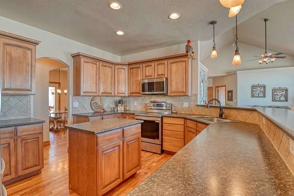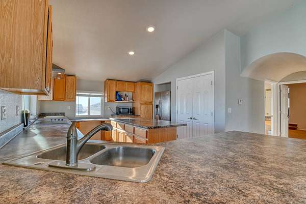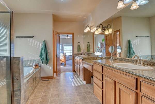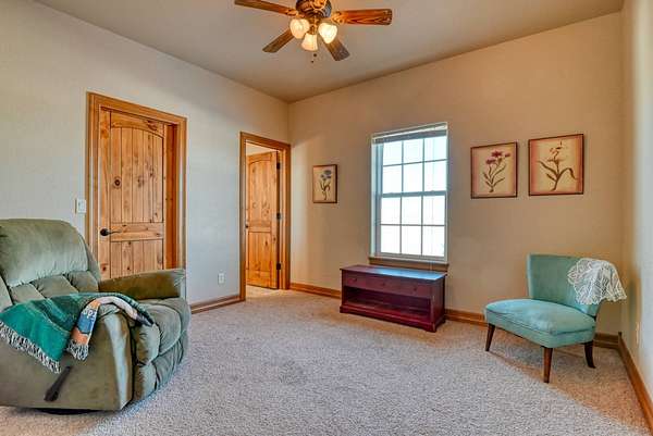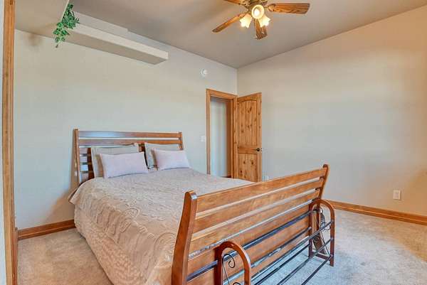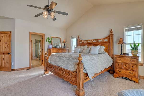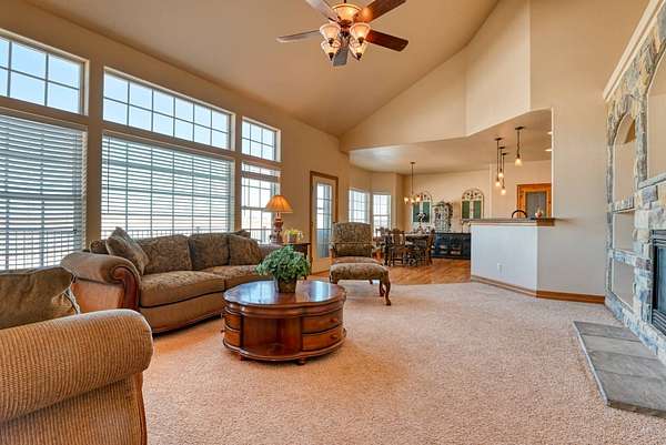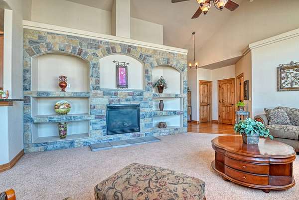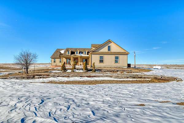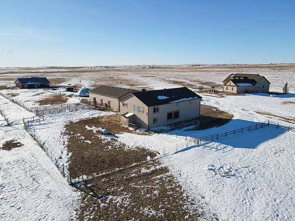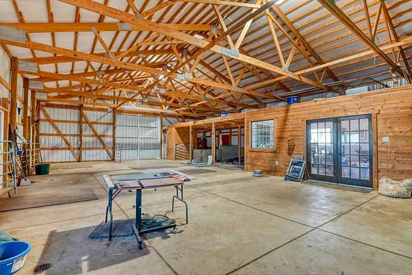 Exceptional 80+ acre ranch estate thoughtfully designed for serious animal enthusiasts who want space, functionality, and luxury in one remarkable property. This expansive ranch is ideally suited to accommodate a wide variety of animals, featuring extensive fencing and cross-fencing, two large, well-equipped barns with tack rooms, and a greenhouse-creating a turnkey setup for livestock, horses, or other four-legged companions to thrive.The impressive main residence offers over 5,400 square feet of refined living space with panoramic view plus a guest house over 2900 square feet. A grand kitchen anchors the home, boasting dual islands and seamless sightlines to the soaring great room-perfect for entertaining or simply enjoying the surrounding landscape. Step outside to the new Trex deck and take in sweeping mountain and ranch views. Designed for comfortable main-level living, the home features a luxurious primary suite with a five-piece spa-like bath and oversized walk-in closet, three additional bedrooms, and a well-placed study ideal for managing ranch operations while keeping an eye on the animals. The walk-out lower level adds exceptional flexibility with a massive recreation room, two additional bedrooms, two elegant bathrooms, and a dedicated theater room great for gaming and watch movies. As you enter the property, you're greeted by a substantial auxiliary dwelling unit offering over 2,900 square feet of living space-perfect for ranch hands, extended family, or rental income. This secondary home includes three bedrooms, two full baths, two living areas, a beautifully appointed kitchen, and an attached three-car garage. In total, the property provides garage parking for at least 11 vehicles, including an RV garage. The barn nearest the guest house has RV parking plus stalls and paddocks that measure 72 feet by 42 feet. The newer barn is where the critters live in luxury and it measures 56 feet by 42 feet and has 10 foot porches on each side complete with cement floors, water, power & two Dutch doors on each side creating a Mr Ed moment. There is an abundance of fencing and cross fencing as well as an arena. Zoned agricultural offering low property taxes, this lovely property is efficiently designed with a solar system and a generator, this ranch blends sustainable living with exceptional infrastructure. There is also a three mile motocross track on the property for family fun. A rare opportunity to own a large, fully equipped ranch that offers the space, amenities, and versatility needed to support both animals and a multi-generational lifestyle-without sacrificing comfort or style. We offer solutions to buyers with houses to sell - call for details.
