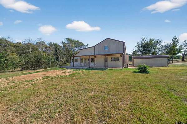 Awesome bardominium on 10+/- acres with lot of room to roam. This is the perfect blend of rustic charm and modern living in this 2920 sf, 1 1/2 story barndo offering 3 bedrooms, 2 1/2 baths, 2 living areas, 2 large laundry rooms. The extra laundry room off kitchen would be great pantry or office space. This open concept design features soring ceilings, a bright living room with plenty of natural light. Primary bedroom offers en-suite bathroom complete with large shower boasting rain head and multiple body sprays, large soaker tub, double sinks and private water closet. Each guest bedroom includes a private upstairs bonus loft area and nice sized closets. Great upstairs game/media room includes a bathroom and an enclosed balcony overlooking the downstairs living room. HVAC is 3 yrs old, house has foam insulation and propane tankless water heater. Enjoy outdoor living with large covered back porch, an open deck area perfect for entertaining complete with a batting cage. Nice storage building and livestock run from front pasture to back acreage. Seller is currently adding private driveway and is willing to pay for new survey with acceptable offer. Too much to list. Don't miss out!