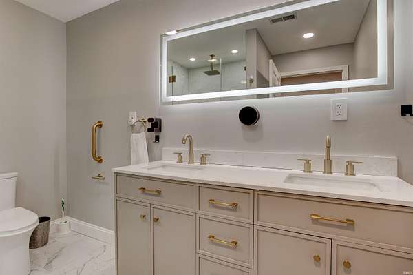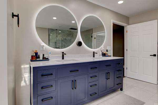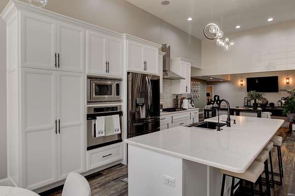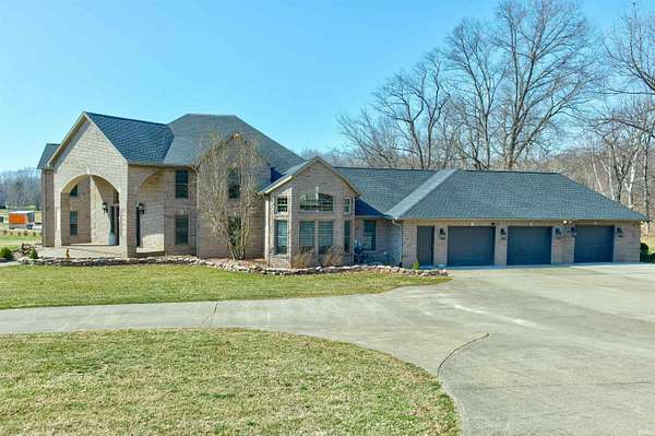 This property is truly a one-of-a-kind home! This is a 4 bedroom, 4 full bath, 2 half bath brick home, located at the back of a rural subdivision, just outside Vincennes city limits. This home has had extensive remodeling and updating, including major ticket items of a new roof, crawlspace encapsulation, full kitchen and bath remodels, radon remediation system, along with plumbing and electrical upgrades. The home has expansive living spaces, comfortable bedrooms, and all 4 bathrooms have walk in showers with Italian marble tile. The main level features a large primary suite, a possible 5th bedroom with adjoining half bath, and there is another full en suite on the 2nd floor as well. The home has a great 3 car garage, with plenty of extra storage including a finished 3rd floor attic area, and an electric subpanel that is ready for car charging. This property has a private backyard area, with 1.82 acres of land, and a nearby creek. This home has combined luxury with functionality in the best ways!