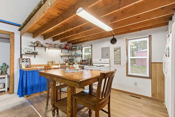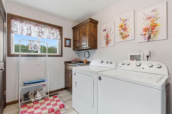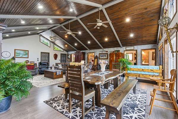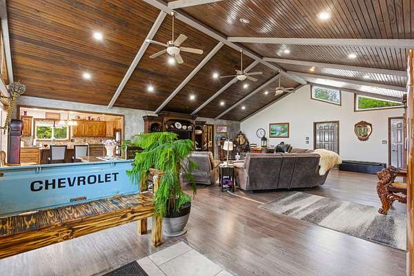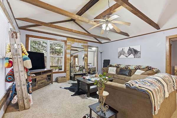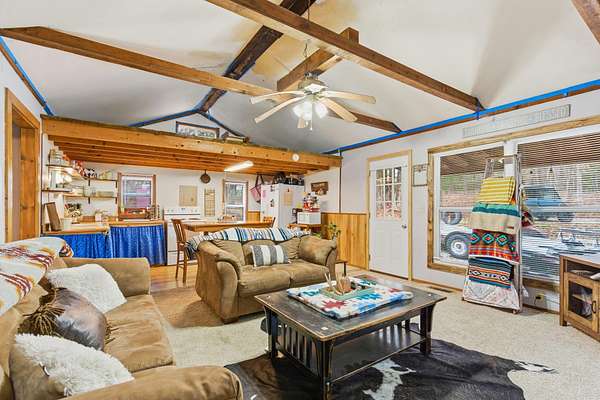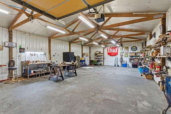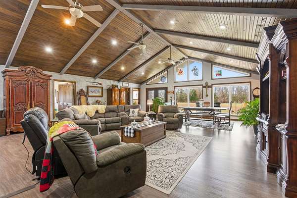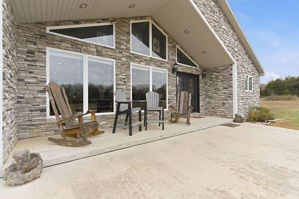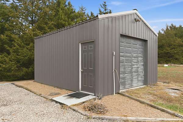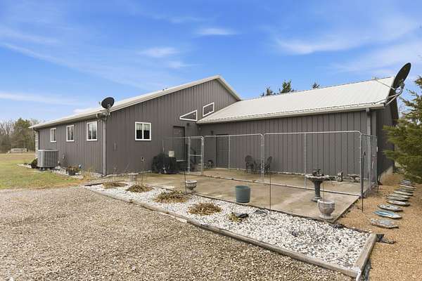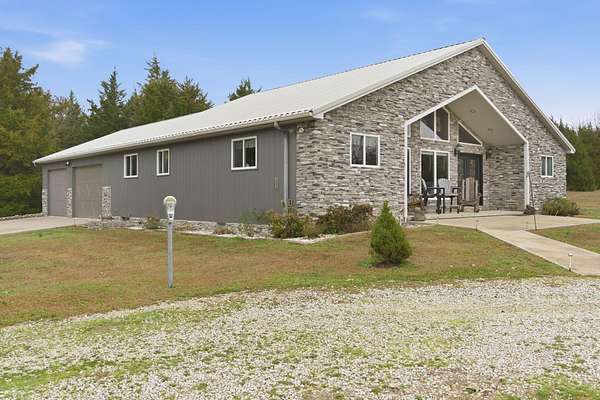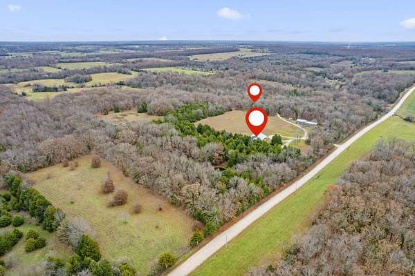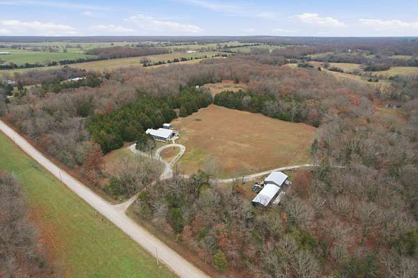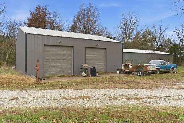 Located at 3406 S. 240th Road in Louisburg, this near 40-acre property offers a private and peaceful setting down a gated entrance. The mix of open ground and scattered hardwood timber creates an inviting backdrop for a home with acreage in Southwest Missouri.The main home offers 1,870 square feet on one level with an oversized two-car attached garage. The open living and dining area brings in excellent natural light with elevated ceilings that follow the roofline. Dark cabinetry and wood finishes add warmth throughout. The layout includes a functional master suite, three additional bedrooms, a full bath, and an efficient laundry area with direct access to a perfect outdoor space for the family pet. The home has been very well cared for since its original construction and provides low-maintenance, comfortable living.Near the residence is a detached garage ideal for lawn equipment, a golf cart, or a UTV. A large two-bay shop of more than 2,000 square feet sits close by, offering ample space for equipment, projects, and storage. It includes a workshop area, an attached lean-to, and an additional storage container.A standout bonus is the private cabin tucked along the timber edge. At roughly 1,000 square feet with two bedrooms and one bath, it works well for extended family, guest stays, or potential rental income. Its wooded setting adds to the appeal and versatility of the property.The acreage is roughly one-third open with the balance in mature oak, walnut, hickory, and cedar. A pond is located in the southeast corner, and an isolated open area creates an ideal location for a food plot or garden space. Whitetail deer, wild turkey, and ducks were present at the time of shooting. The combination of open ground, hardwood timber, water features, and privacy creates a strong mix of usability, outdoor enjoyment, and long-term land value. This is a property that blends residential comfort with the beauty and function of rural living in Southwest Missouri.