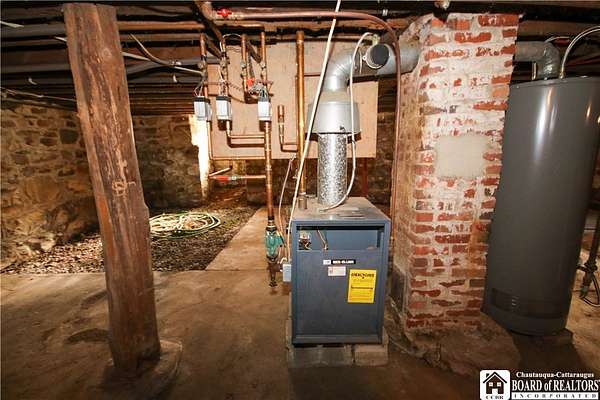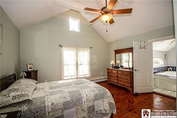 You really must see the inside of this restored Victorian Farmhouse which has over 3,800 square feet of living space and is located on 10+ acres in the Bemus Point/Maple Grove school district. The home has 5+ bedrooms, 3 full baths, with all the Victorian charm yet the conveniences of today. The updates include; new vinyl windows, updated wiring, newer plumbing, and vinyl siding. Heating and cooling is handled by the updated hot water boiler system and 7 new energy efficient mini-split ductless units. There is a formal dining room with lots of windows. Many rooms have hardwood floors and are complimented by the beautiful natural woodwork. The kitchen is modern yet flows nicely with the house. Step down to the sunroom/family room with its ceramic tile floor and French doors leading out to a concrete patio. On the first floor you'll find a formal dining room, living room, there is a bedroom and full bath along with a spacious first floor laundry room. Also there is another room that has previously been used as an office, a den, a playroom, it can really be used for whatever your needs are. Upstairs there are four spacious bedrooms and a full bath off the hallway. The master bedroom has a cathedral ceiling, hardwood floors and a large master bath with a huge jetted tub and beautiful glass block/tile walk in shower and skylights to let in lots of natural light. Gorgeous natural woodwork and flooring(some with radiant heating) Previous owners have all lovingly invested countless hours and dollars into completing this masterpiece to what it is today and the pride in ownership shows. Very energy efficient, the new windows and a well insulated home makes for low utility costs especially for a home of this size. The one car attached garage is extra deep and the adds extra storage capabilities. All of this equals a home that is ready to just move in and start enjoying and making memories right away.