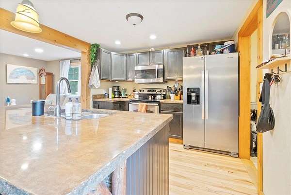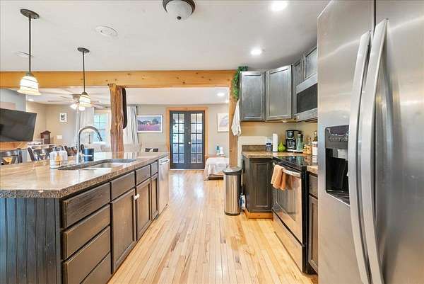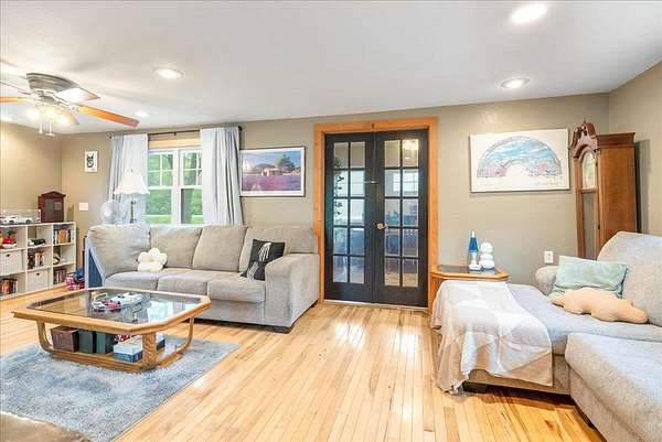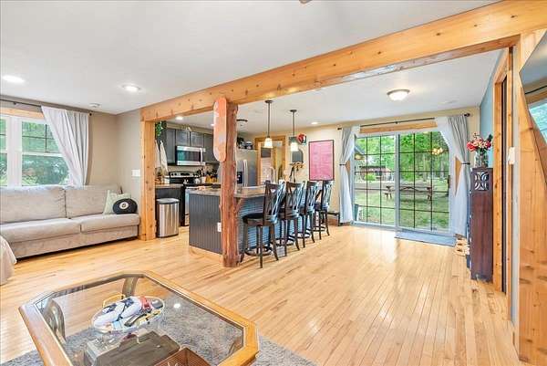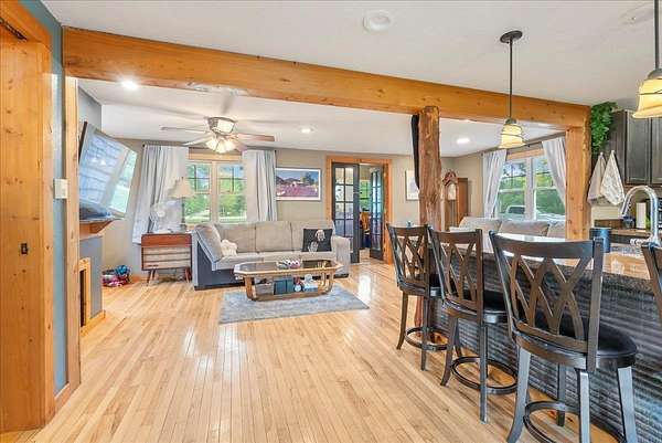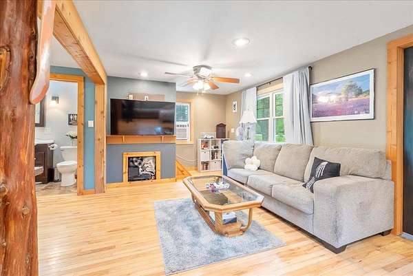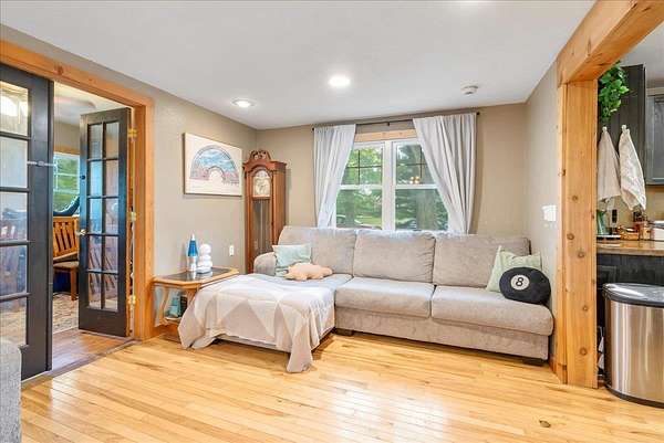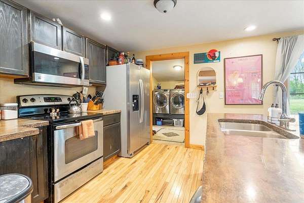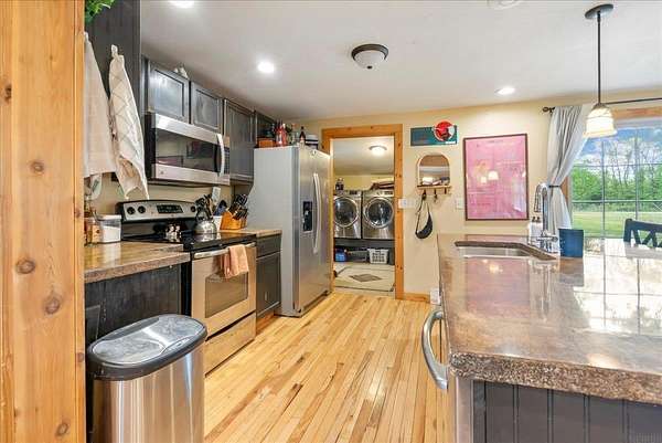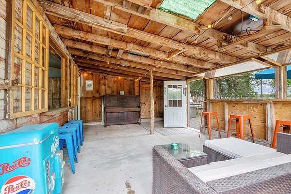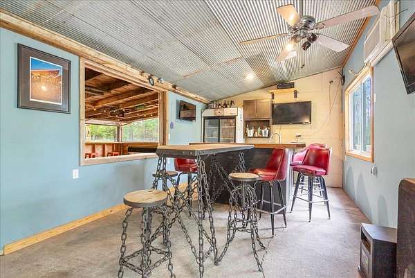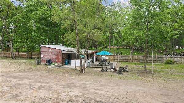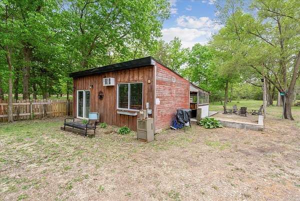 Welcome to a rare opportunity to own 11.72 acres of pure potential located on a hard surface road in northern Cedar Falls! This acreage will be sure to amaze you. The property line stretches all the way down to Dunkerton Road, right before the empty lots. Trails throughout the property allow you to explore easily, ride your bikes, side by sides, you name it! The bar building is set up as the perfect entertainment space, providing an indoor heated & cooled area with a full bar set up and electricity. Attached is an open, covered entertainment space perfect for those mild summer days to enjoy the breeze, and even a sandbox area for the kids to enjoy. On the other side, a deck and fire pit area for summer nights. Windows open between to share the space with guests through all sides! Many different fenced areas throughout the property are set up to house your future goats, chickens, garden areas, or anything your heart desires. While the house is in the 100 year floodplain, the rest of the property is mainly 500 year. The house was completely gutted and remodeled in 2009, including plumbing and electricity. Steel roof and new windows throughout were installed 2022. The main level boasts gorgeous hardwood floors, an open concept kitchen, living and dining combo, a full bathroom and a sun room through french doors. The kitchen counter tops are beautiful granite crete, custom made by a local contractor. Upstairs is home to the bedroom with vinyl floors and the possibility to add electric baseboard heat, already wired. In the basement is the 2nd full bathroom with large walk-in closet and the possibility of a 2nd bedroom if finished, egress window already in place. Basement floors are sealed, stained concrete with radiant in-floor heat through the boiler system. The combination of log and shaker siding makes a unique bungalow look! This property is truly one-of-a-kind, schedule your private showing today!