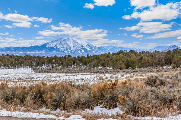 From Hwy 82, turn onto Spring Valley Road (at the Thunder River Market stoplight). After 2.3 miles uphill, turn left at the Elk Springs entrance gate. Continue on Elk Springs Drive for 3.4 miles, all the way back to filing 9. The end of the road is a loop that curves to the left. When you can see Mt. Sopris and the meadow, you've arrived. The landmark single tree of the road marks the lot.