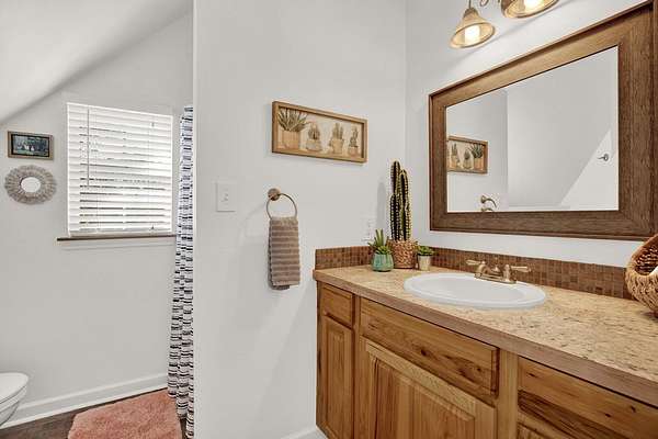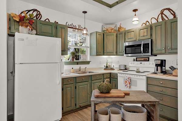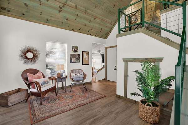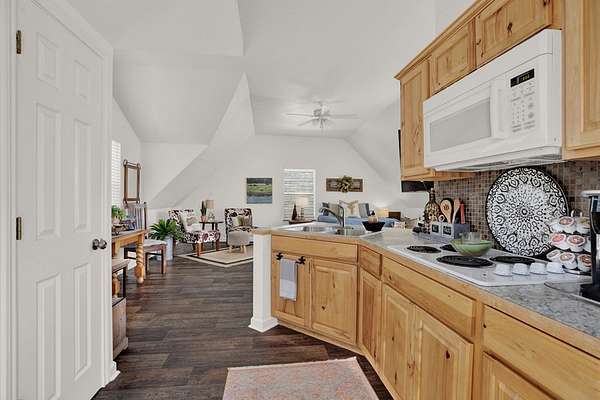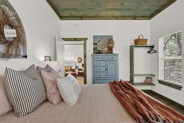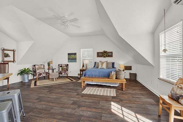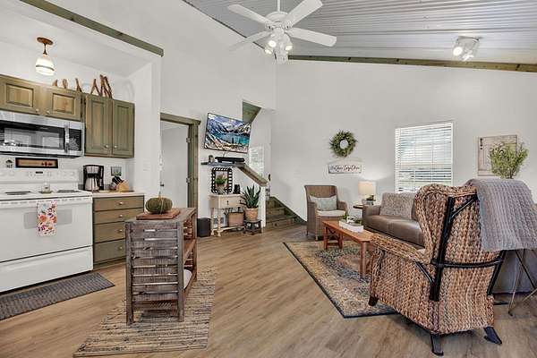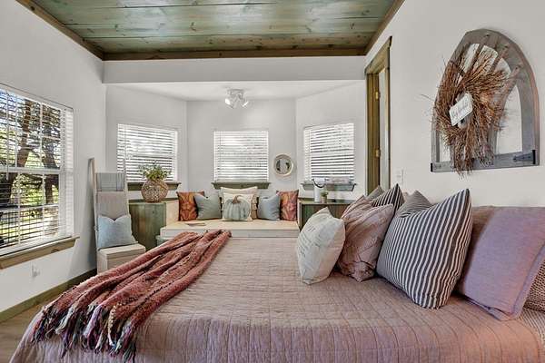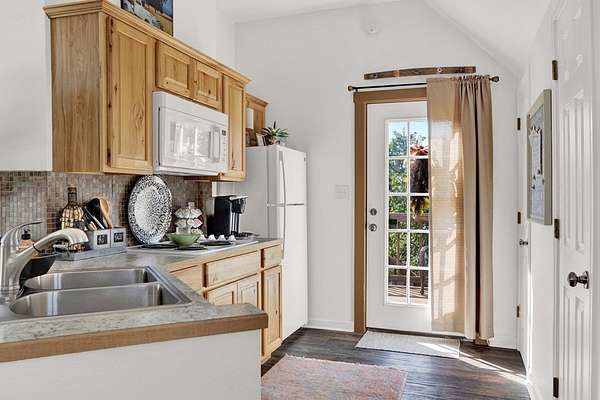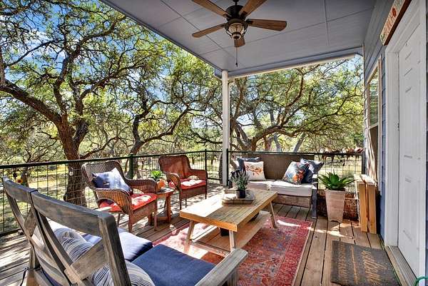 Hill Country retreat on 4 wooded acres with income potential, located just 13 minutes from Fredericksburg. Known as Cactus Flower Cottages, this property offers two accommodations and is currently operating as an owners second home and short-term rental. The main home features a full kitchen, living and dining areas, a bedroom, and an upstairs loft. A guest apartment sits above the two-car garage and offers a spacious open suite with a private deck overlooking the surrounding trees. Both accommodations feature their own decks and outdoor sitting areas, creating a peaceful and secluded setting surrounded by nature. This serene property offers a perfect escape from city life while also providing an established income opportunity. Most furnishings and future bookings convey. For more information, visit www.cactusflowerfbg.com .