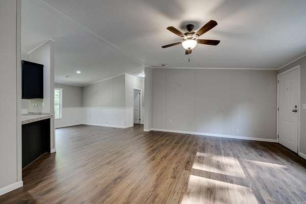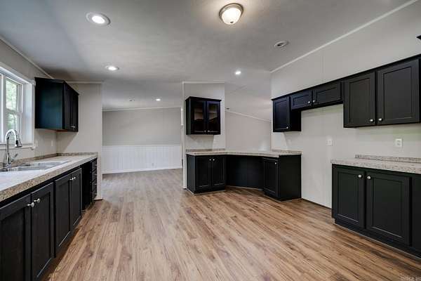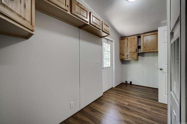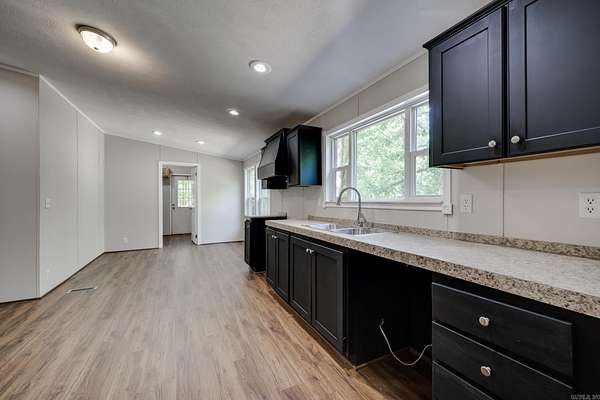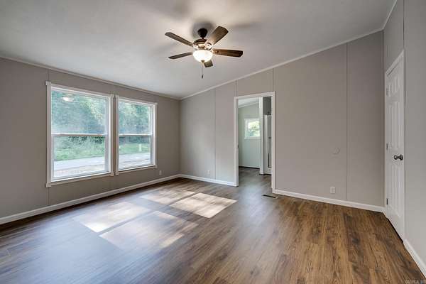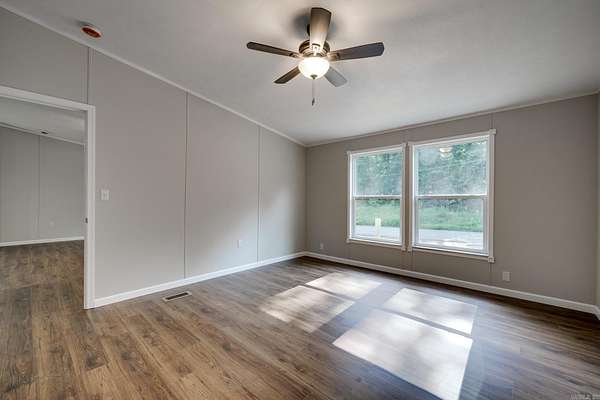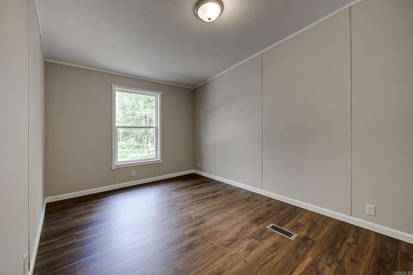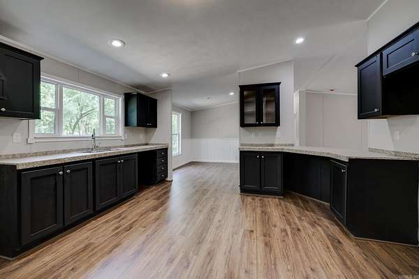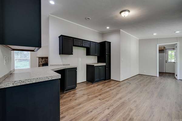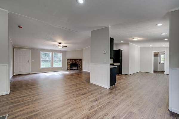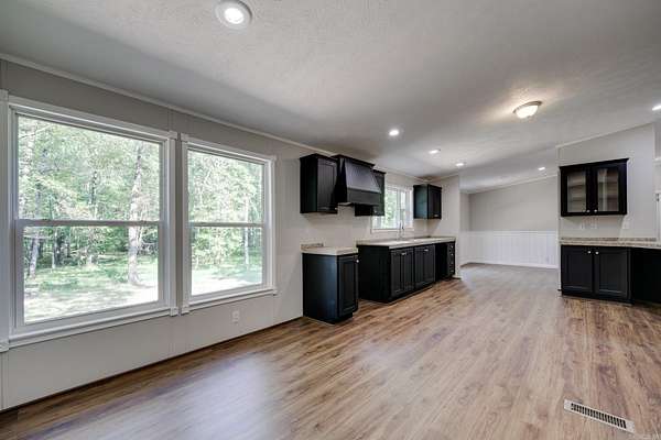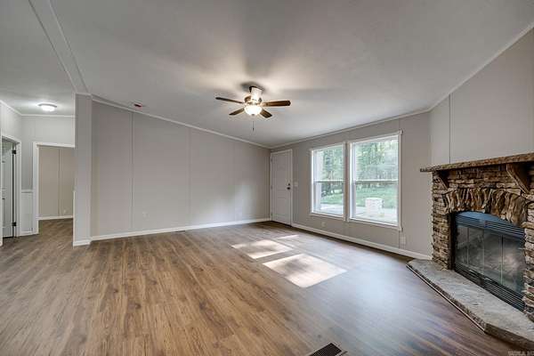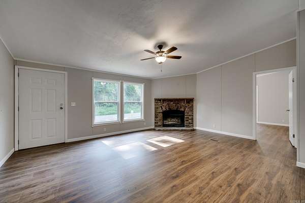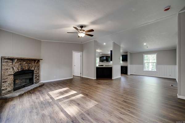 Welcome to your dream home on 3.2 acres of picturesque, wooded land! This stunning home offers a perfect blend of comfort and style, featuring 3 spacious bedrooms and 2 sparkling bathrooms. Step inside to discover a generous living space that includes an enormous kitchen and laundry room, designed for both functionality and ease. The kitchen and dining areas showcase brand new cabinet doors and fresh paint, creating a bright and inviting atmosphere. Enjoy meals in the charming breakfast nook or envision a custom-installed island to enhance your culinary experience. This home is filled with upgrades, including a brand new roof, updated heating and air system, and luxury vinyl plank flooring throughout. The decorative wood-burning fireplace and stylish trim add warmth and character to this beautiful space. Conveniently located with easy access to Interstate 530, this home offers a serene escape while remaining close to all the amenities you need. FHA and Rural Development financing options are available with an approved home application. Don't miss this incredible opportunity--schedule your showing today and step into your new lifestyle!