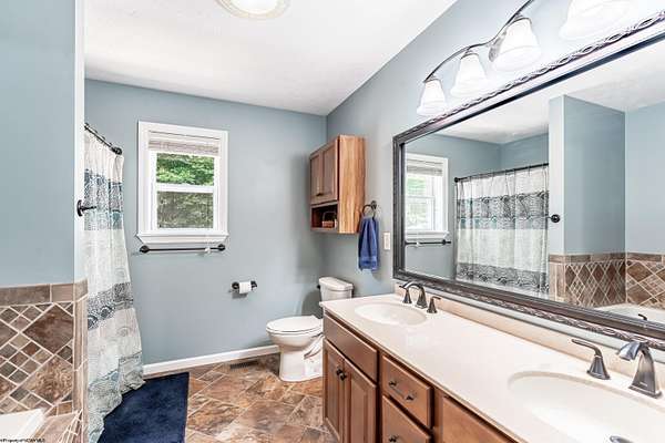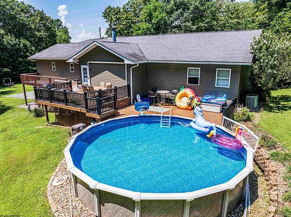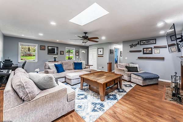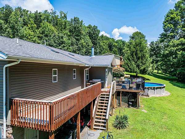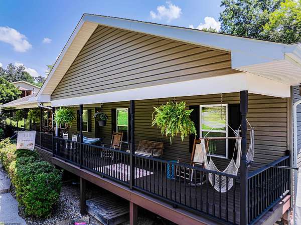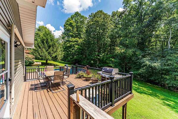 Welcome to your own slice of almost-heaven! Nestled on 2.5+/- acres with large areas of cleared WV flat, usable land, this beautifully designed ranch offers the perfect blend of comfort, space, and outdoor living all with the ease and convenience of single level living. The show-stopping 576 sq ft covered front porch stretches across the entire front of the home just imagine mornings with coffee while listening to the birds or evenings unwinding in total peace. Out back, expansive decking and an above-ground pool create the ultimate setup for entertaining or simply enjoying the outdoors, while a peaceful creek tucked into the woods at the base of the hill adds to the natural charm of the property. Inside, you?ll love the open-concept layout featuring a spacious living room with a cozy wood-burning fireplace, flowing seamlessly into a well-appointed kitchen with solid surface countertops and a large center island?perfect for gathering just next to the dining room. With 4 bedrooms 2 with en suites and 3 full baths, there's room for everyone to spread out comfortably all conveniently located on the main level. The finished basement adds over 600 sq ft of additional living space, complete with a gathering room and gas insert fireplace, while a 26x28 unfinished area offers endless possibilities workshop, gym, or future expansion. An oversized 2-car garage rounds out this incredible property. Enjoy the peace of country living without sacrificing convenience, with easy access to I-68 and I-79 just minutes away. If you've been searching for space, functionality, and a true connection to the outdoors this is it.