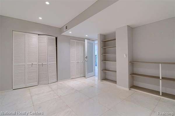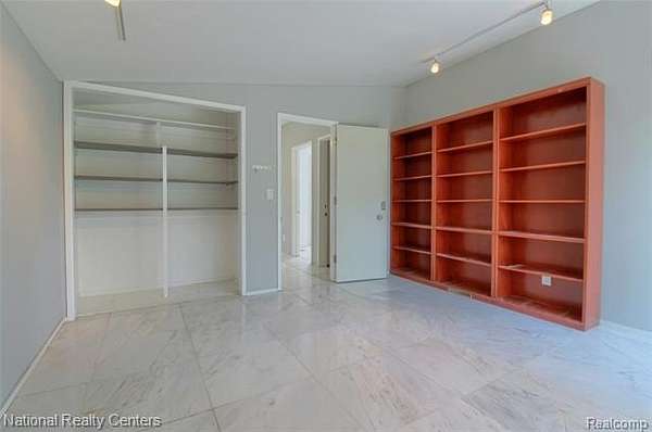 Upper level hosts three bedrooms and two full baths, including a master suite with a wall of built-in closets and ample storage.