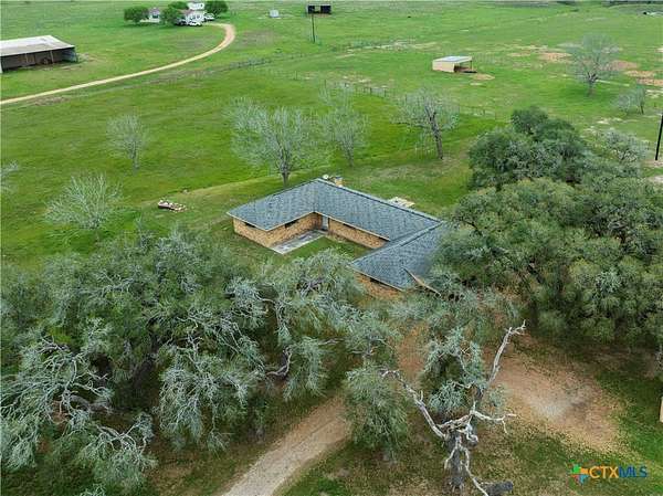 Sitting on 6.87 acres just west of US 77, this 3-bedroom, 2 bath ranch style home is located on a paved road in a great area between Schulenburg and Hallettsville. Featuring 2,240 SF, the home has an open living concept, wood floors, fireplace, granite countertops throughout and walk-in closets. The back patio is a perfect place to enjoy your morning coffee and watch the sunrise! This spacious acreage is completely fenced with an Ag Valuation in place, 2 acres are cross-fenced for livestock, with a small barn/shed and pens, perfect for FFA and 4-H projects and show animals. Surrounding the house are several century live oaks and pecan trees providing shade and tranquility. Ideally positioned just 10 minutes from Hallettsville and 15 minutes from I-10 in Schulenburg, these communities feature dining, shopping, and small-town community activities that are the foundation of country living! Come take a look at and start living the country life!