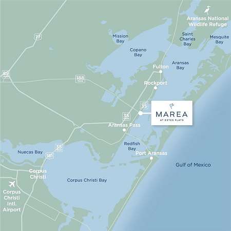 Exceptional opportunity to build in Marea with a deeded boat slip in Marina A and a pre-approved architectural plan designed to streamline the process. Lot 44 is ideally positioned on a corner homesite overlooking the marina, offering water views and close proximity to community amenities. This homesite is paired with a pre-approved “Estes Marina Villa” plan by OBMI, the internationally renowned architecture firm behind Marea's master vision. The design features approximately 3,060 square feet with 4 bedrooms and 3.5 bathrooms, including dual primary suites, expansive indoor-outdoor living, and a private courtyard with pool potential. The plan has been thoughtfully created to align with Marea's architectural code and can significantly expedite the design and approval process through the Architectural Review Committee. Plan is not included in the purchase price. Marea is a boutique coastal community of just 67 homesites, each with a deeded boat slip and access to two private marinas. Designed around privacy, architecture, and outdoor living, the community offers direct access to Estes Flats and the open waters of the Texas coast. Build with a pre-approved path or design your own custom home within Marea's architectural guidelines. Lot 44 offers a rare opportunity to create a marina-oriented coastal retreat with strong design pedigree and immediate access to the water.