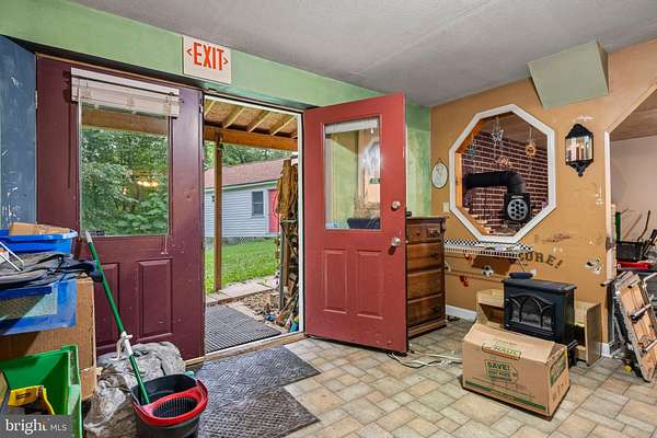 This charming raised ranch offers a perfect blend of comfort and functionality, nestled on a generous 5.7-acre lot. Step inside to discover an inviting open floor plan that seamlessly connects the kitchen and dining area, ideal for gatherings and everyday living. The eat-in kitchen features an island, perfect for casual meals, while the family room off the kitchen provides a cozy space to unwind. With three spacious bedrooms and two and a half bathrooms, this home accommodates both relaxation and convenience. The primary bath offers a private retreat en-suite. The finished walkout basement features a free-standing wood fireplace that adds warmth and character while providing additional space for a media or game room, and a potential fourth bedroom. Enjoy the ease of laundry in the basement, and take advantage of the oversized detached garage for all your storage needs. 2oo amp panel seperate from the house. Additionally, the second floor is framed and plumbed for three bedrooms and one full bath including a hot water heater.. The possibilites are limitless with the additional space! Finishing out this property is a separate 12X26 shed. Embrace the tranquility of country living while being just a short drive from local amenities. This home is ready to welcome you! This home is being sold as is.