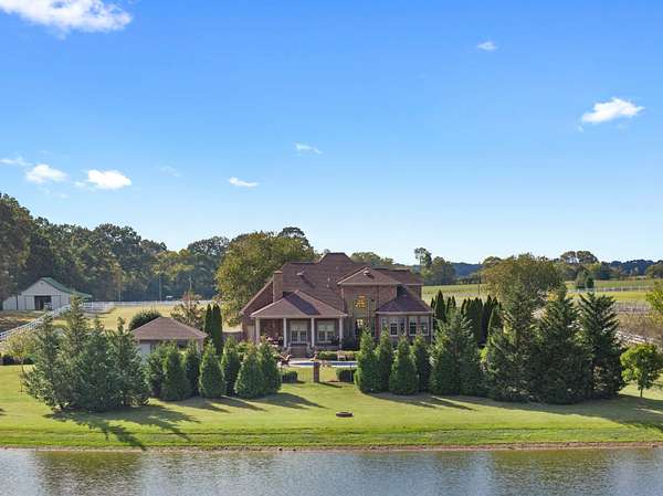 French Country Style Estate & Equestrian Farm.Situated on approx 12 acres in Killen,AL. FIRST TIME OFFERED!Custom built.Gary Ragsdale designed. Quality thru/out this 4 BR/3.5 brick&stone home. 2nd level bonus room could be 5th bedroom. Spacious &open kitchen/family room area. Den with stacked stone fireplace. Unfinished storm room in basement. Lagoon shape pool, pool house with 1/2 bath & covered porch. Custom barn is 35x56 w/4 stalls,concrete wash area & grooming area, covered hay storage area, dry lot for sick animals w/stall access, dressage arena, covered porch w/stall access. Triple Crown Fencing. Situated on a private lake & extensively landscaped. Underground utilities to property. Extended parking area & so much more! Additional property available for purchase. Detailed fact sheet available.