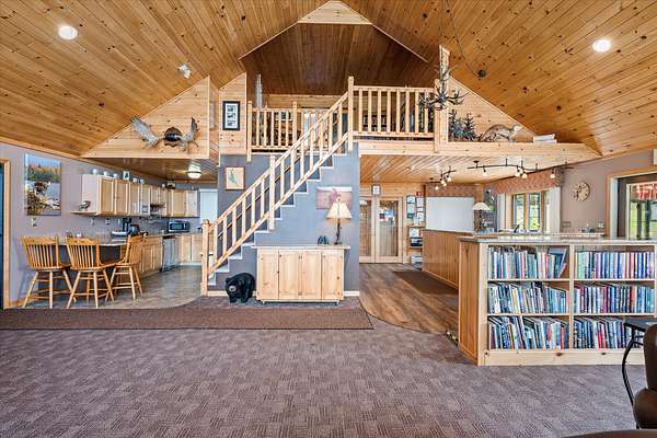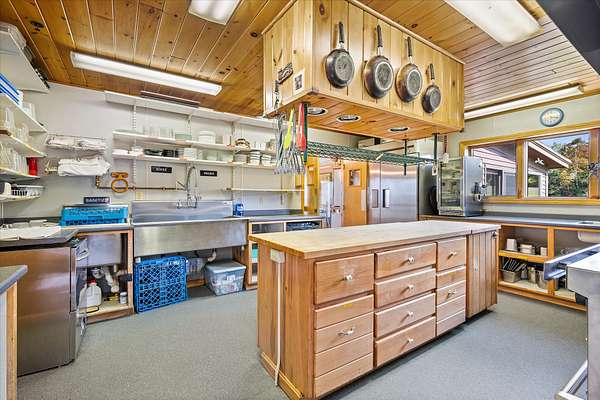 With breathtaking views of Mt. Katahdin and the East Grand Lake Region, the First Settlers Lodge offers a haven from the outside world with first class amenities. An unparalleled 42-acre private estate or commercial venture on US-1. Bordered by permanent conservation land, this four-season sanctuary guarantees ultimate privacy and endless adventures. A place to reconnect with family, friends, guests or nature whether sitting by the fireside or out on the direct trail access with hiking boots, snowshoes, cross country skis, ATV's, ITS trail for snowmobiles or your favorite rifle during hunting season. East Grand Lake is renowned for its world class fishing and boating. The four-season lodge has something for everyone...reunions, retreats, celebrations, meetings, fishing, hunting, or the forgotten art of relaxing. The lodge offers a main residence plus a guest wing, perfect for multigenerational living or a commercial entity while living on site. It includes 6+ bedroom suites, each with a private bathroom, plus a large bunk loft for gatherings. A stunning chef's kitchen with commercial-grade appliances, dining room, a great room with a fieldstone fireplace and pellet insert. The guest rooms are in separate wings, while the upper level overlooks the great room, plus a guest room with full bath and deck offering views of East Grand Lake. The lower level offers a specious meeting or event room along with private living space for the owners and an in-law apartment. This is a turnkey property, fully furnished and equipped for a seamless transition. Some of the features included are a 2023 Chevy 2500 Duramax truck with a Boss plow, Polaris Ranger UTV, & multiple trailers. Enterprise-grade UniFi WiFi 6, security camera system, and dedicated AC units for all suites. Three large outbuildings (two 10x30, one 10x20) for all your storage needs. A true legacy property combining total privacy, modern comfort, and direct access to the best of Maine's outdoor recreation. See MLS 1641170 also!