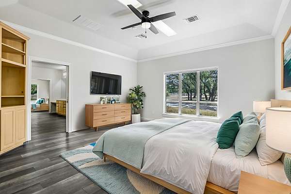 This exceptional 65-acre estate presents a rare opportunity along the thriving Highway 71 corridor, offering 701 feet of prime frontage, a paved entrance, and a premier location just minutes from Baylor Scott & White Hospital and the City of Horseshoe Bay. Positioned within Horseshoe Bay's ETJ, the property sits in the path of steady Hill Country growth, surrounded by expanding medical, commercial, and residential development. The gently rolling topography, majestic hardwoods, and open meadows create a beautiful canvas for future use, with multiple elevated building sites showcasing long-range Hill Country views. Blending development potential with refined Hill Country living, the property features two custom homes and a duplex totaling 10,308 sq. ft. The 3,730 sq. ft. main residence showcases open living spaces, high ceilings, and a sparkling pool. The second 3,490 sq. ft. home offers spacious living areas and a gourmet kitchen, while the duplex provides two 1,544 sq. ft. units--ideal for guests or rentals. All structures are currently served by well water and septic, with the possibility of connecting to city water and sewer from the adjoining tract. The frontage is ideally suited for commercial, retail, or medical use, while the interior acreage suits subdivision, multifamily, or estate development. Whether envisioned as a private retreat or long-term investment, it embodies Hill Country sophistication, versatility, and unmatched potential in one of Central Texas's fastest-growing corridors.