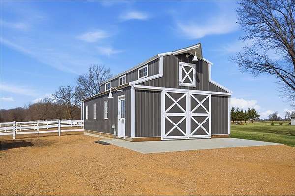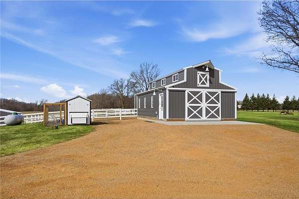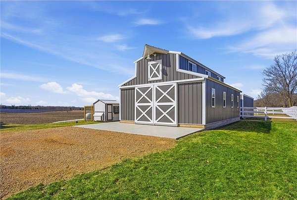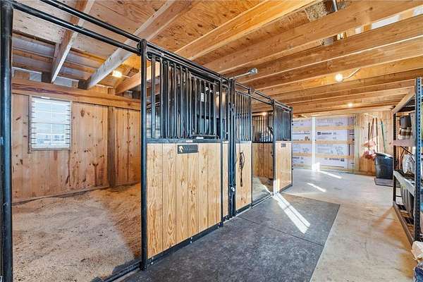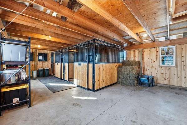 Outdoors, the property is thoughtfully designed for both recreation and equestrian use. White vinyl horse fencing encloses the grounds, complemented by a professionally maintained lawn and granite rock landscaping. A 20x32 insulated monitor barn with upgraded stalls, additional barn with tack room and heated automatic waterer, outdoor riding arena with sand footing, horse shelter, insulated chicken coop, and Amish-built shed create a turnkey hobby farm setup. A 30-amp outlet located near the barn provides convenient power for an RV or horse trailer. A rare blend of natural beauty, quality construction, and functional acreage in a growing area — this is country living at its finest.