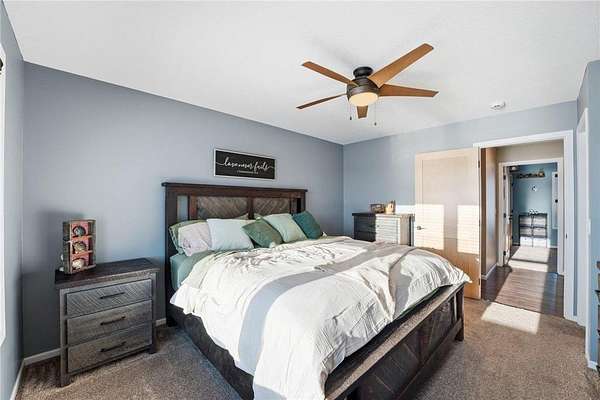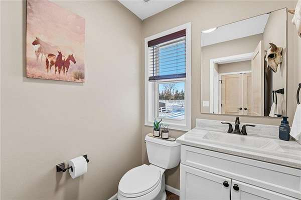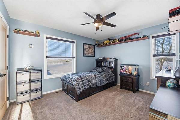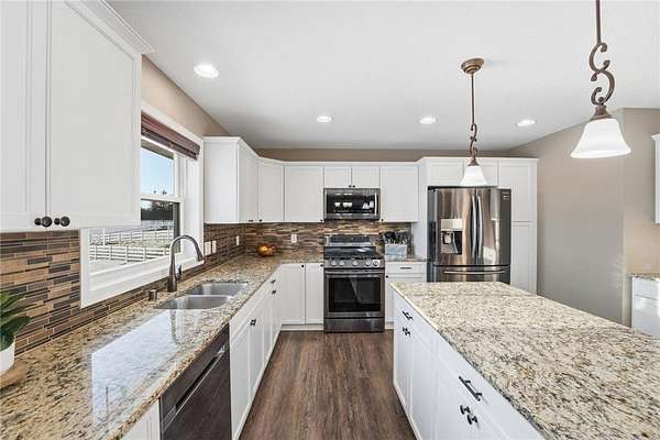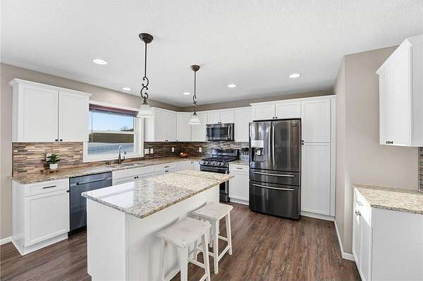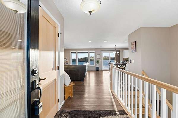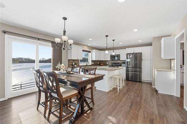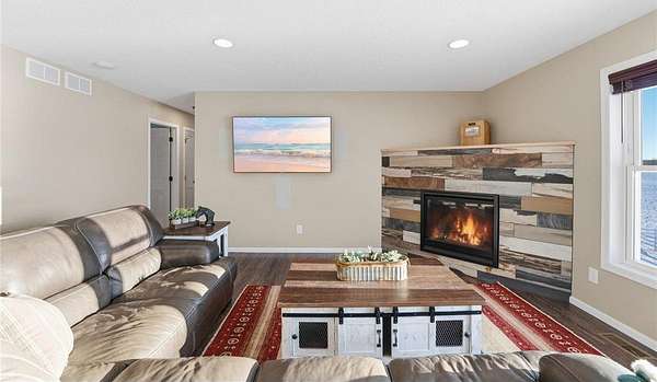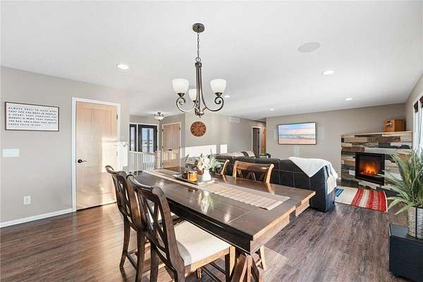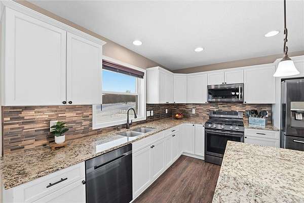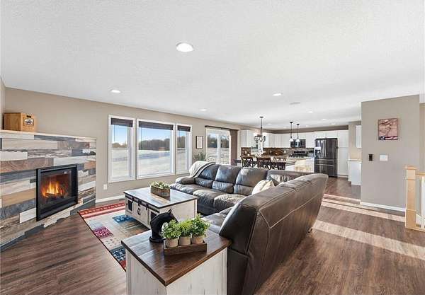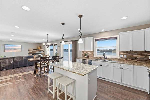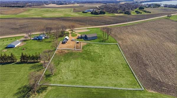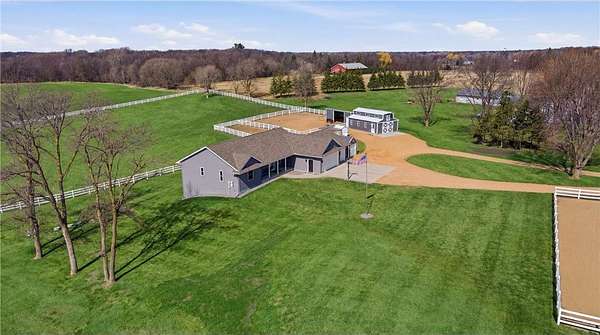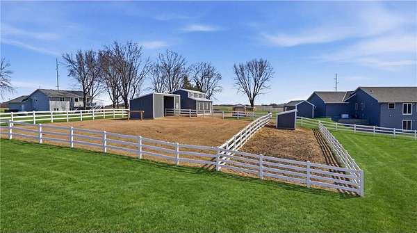 Set among beautiful rolling hills and adjacent to mature woods, 3410 County Road 10 N offers an exceptional opportunity to own a private, scenic homestead just minutes from town with convenient access to amenities. This custom-built rambler sits on almost 4 horse-ready acres and showcases quality craftsmanship and meticulous care throughout. Inside, warm finishes and thoughtful upgrades create a refined yet comfortable atmosphere. The kitchen features granite countertops, custom backsplash, soft-close cabinetry with crown molding, black stainless Samsung appliances, and a gas range. An illuminated island anchors the space, opening seamlessly to the main living area where a tile-surround fireplace, built-in surround sound, and full media setup make entertaining effortless. The primary suite offers a spacious walk-in closet and a beautifully appointed bath with tile walk-in shower and dual vanities. Two additional bedrooms are generously sized, and the functional mudroom with built-in lockers connects to a well-equipped laundry room. Solid maple doors and railings, LVP flooring, brushed oil-rubbed bronze fixtures, and LED lighting add to the home’s elevated feel.