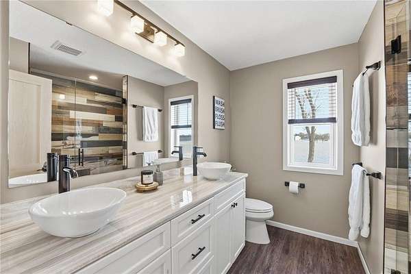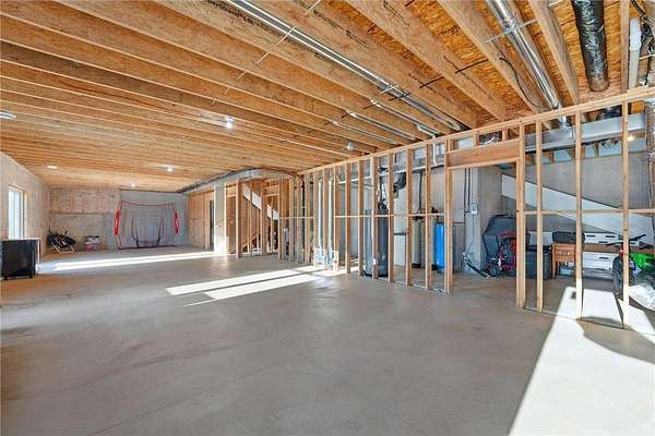 Built on a poured concrete foundation with 9-foot ceilings in the basement, the unfinished lower level offers future expansion potential. Major mechanicals include forced air heat and central air, owned water softener and iron filter, new water heater (2024), new smoke detectors (2025), and a 14kW Generac whole-home generator. The fully insulated and heated garage is finished with polyaspartic flooring and upgraded electrical.