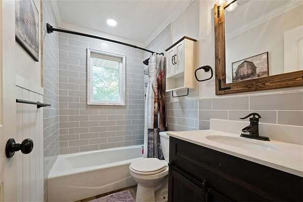 Modern prairie farm aesthetic with molding and trim accents are amongst the interior updates in the living room, kitchen and hall bath. Main level full bath updates include new lighting, vanity and subway tile backsplash. Full bath is on the lower level with a 3rd non-conforming space and laundry around the corner.