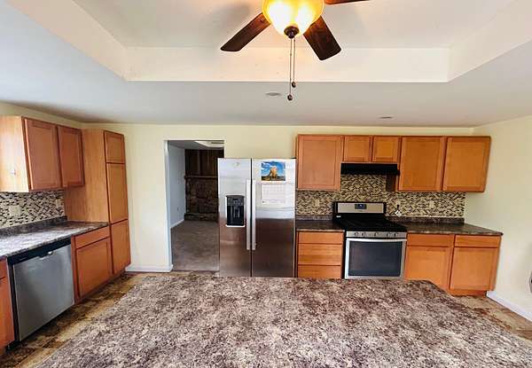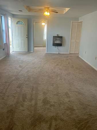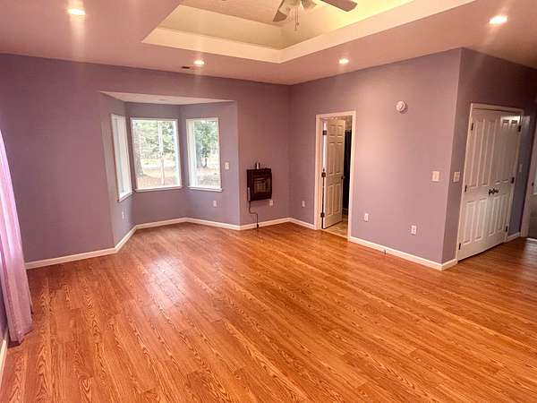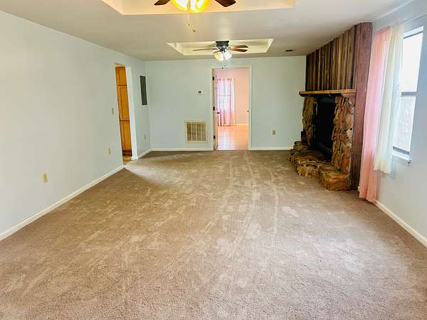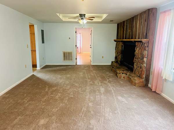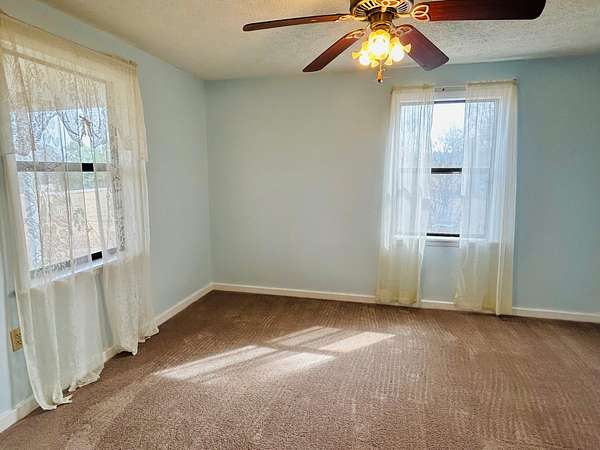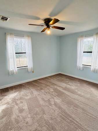 The primary bedroom features a tray ceiling and his-and-hers closets, providing comfortable space and storage. Outside, the property includes a detached 2-car carport and ample acreage to enjoy--perfect for gardening, recreation, or simply taking in the quiet rural setting.