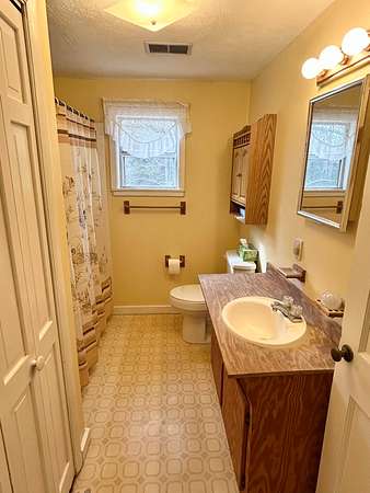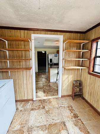 The home offers a functional layout with a welcoming kitchen featuring a small pantry, kitchen island, and all appliances conveying. Just off the kitchen is a convenient laundry/mudroom that leads to the back porch--ideal for country living. A wood-burning fireplace adds warmth and charm to the main living area, while the gas stove is perfect for everyday cooking.
