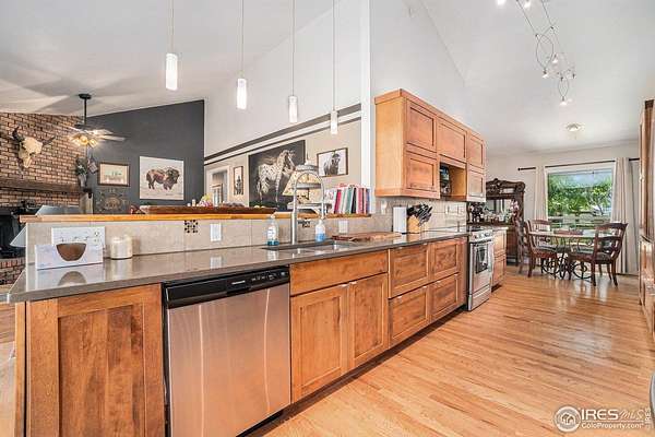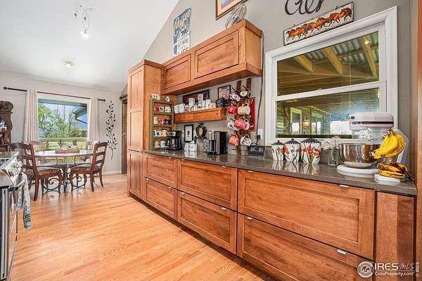 Beautiful Ranch Style home in gorgeous rural Berthoud. This home is truly amazing! Features include 4 bedrooms, 3 bathrooms, Quartz kitchen countertops, custom cabinets, MARVIN windows, hardwood floors, HUGE loft for game room/flex space/office, stunning primary bath, west facing patios for great mountain views, attached 2 car garage PLUS 30x40 shop with a tack room and hay storage, corrals and loafing sheds ready for animals. HOLD ON - I AM NOT DONE! It also has a Mother In Law apartment! One bedroom, one bathroom, living room, kitchenette and another large loft perfect for guest bedroom or office.