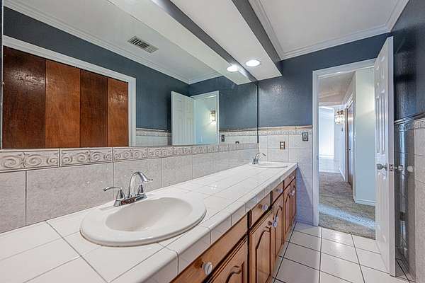 - Auto Garage Opener, Carpeting, Ceiling Fan(s), High Ceilings, Pantry, Shades/Blinds, Skylight(s), Smoke Detector(s), Tile Flooring