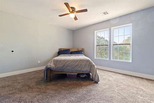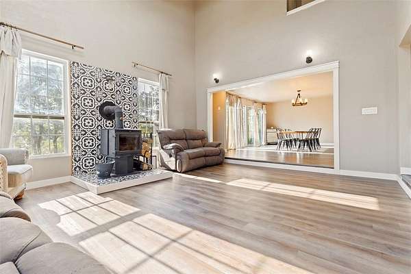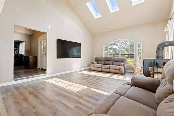 Nestled on just under 10 acres, this beautiful 4-bedroom home with an office combines comfort, functionality, and country charm. Surrounded by mature trees, abundant wildlife, and open space to explore, this property offers a peaceful retreat while still being conveniently located. The inviting front porch, accented with cedar beams, provides plenty of room to sit back and enjoy the serenity of nature. Inside, the living room welcomes you with a soaring vaulted ceiling, creating an open and airy feel, while the spacious kitchen and dining area set the stage for everyday living or entertaining. A versatile office or flex room is located on the main level, offering endless possibilities for work, hobbies, or guest space. Upstairs, the primary suite serves as a private retreat with a spa-inspired bathroom featuring a large walk-in shower, soaking tub, double vanities, and a cedar-lined walk-in closet. The additional bedrooms are generously sized with beautiful natural light and share a well-appointed bathroom with double sinks. With its expansive land, abundant wildlife, and timeless features, this home offers the perfect blend of tranquility and convenience - ready to welcome its next owner.