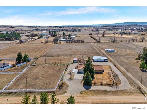 Est $4,805/moIdyllic 5 acre horse property or hobby farm in prime west Berthoud location down a quiet country road with incredible views of the front range. Property has fully fenced pasture with 5 stall barn with water and electricity plus tack room and outdoor access and attached work shed, loafing shed and 115' x 180' riding arena. Sunny 2724 sq foot brick ranch with hard wood floors all freshly painted, 3 bed plus one non conforming, 3 updated baths with stone vanities, partially finished basement, large patio and fenced and sprinkled yard with mature trees, RV pad and Generac generator included. So many possibilities! HOA has no covenants, dues are for road maintenance only.