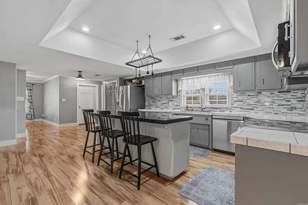 Beautiful 3BR/2BA country home on 14.23 acres in Bismarck! This 1,952 sq. ft. home offers a full wraparound porch, screened back porch, beautiful flooring, and all-new appliances. The spacious primary suite features a large bath with soaking tub, walk-in shower, and two closets. Enjoy peaceful views from the wide grassy front yard and wooded acreage in the back with a year-round creek running the entire length of the property -- perfect for fishing and watching wildlife. The property includes a fenced garden area with fruit trees and well water for gardening, plus public water to the home and shop. The impressive 2,400 sq. ft. shop features an office, full bath, washer/dryer hookups, its own septic system, and RV hookups. Home and shop are connected to a generator system for added peace of mind. A true turnkey country retreat with room to live, work, and enjoy the outdoors!