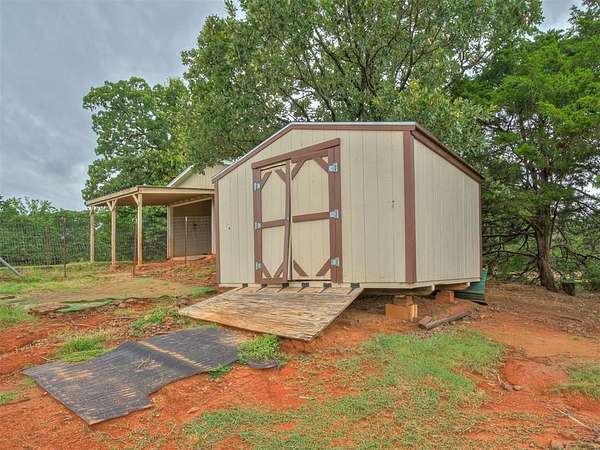 Outside, the property shines with a spacious detached 3-car garage/workshop (approx. 1,600 sqft), an additional outbuilding with electricity, lean-to, storm shelter, and a paved driveway. An invisible fence surrounds the entire property, making it a pet-friendly haven.