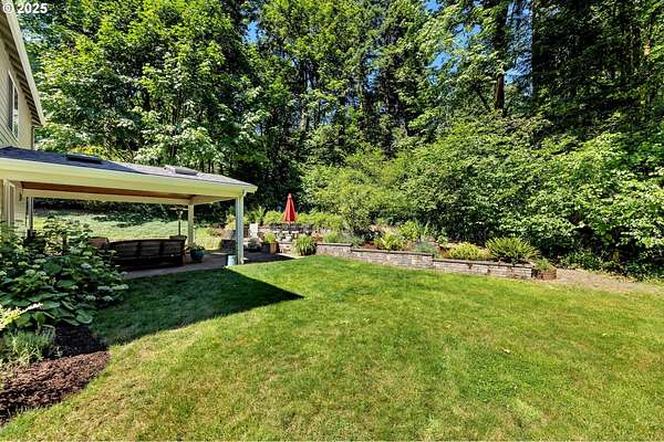 Discover tranquility in this charming 3347 sqft, 4 bed, 2.5 bath home with a bonus room and an office on beautiful 2.5 acres! The expansive kitchen is highlighted by granite countertops, a walk-in pantry, and a spacious island for gatherings. The main level features 9ft ceilings and a cozy propane fireplace. Discover the convenience of a laundry room with a sink. The large primary suite offers a large primary bathroom and walk-in closet. Step outside to the large, vaulted tongue and groove covered patio, perfect for enjoying the trees, terraced landscape and raised garden beds. Additional features include a storage shed, room for a shop, new exterior paint and a newer roof!