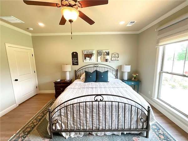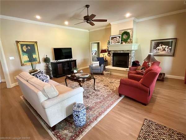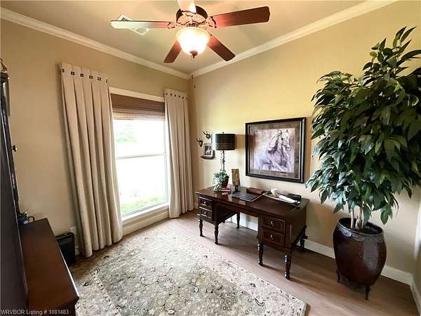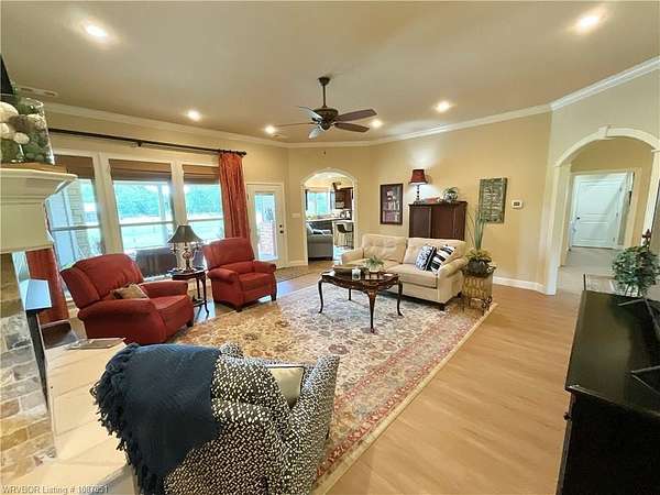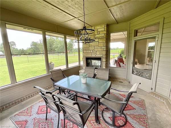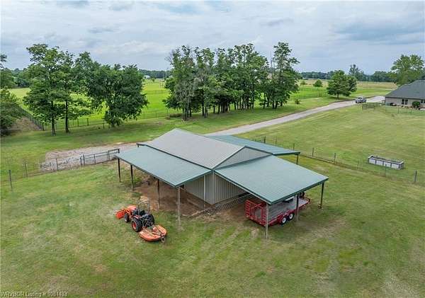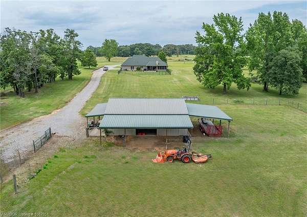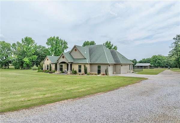 Beautiful Custom-built Home, Horse Barn on 7 Acres. Please note the 'automated' $ per ft does not consider the addt'l 4 acres (7 vs 3 acres), the horse barn, the 216 sq ft screened in patio w/double sided fireplace connecting to the 324 sq ft covered patio among other extras. This home has approx. 4,000 sq ft under roof. Contact listing agent or your agent for Additional Features List. Only 14 minutes East of Ft Smith! Tons of crown moldings, arched doorways & pocket doors. The kitchen has a unique custom island with lots of storage, deep drawers & pull outs, granite, open shelves, gas range & built in oven & microwave, pantry. Beautiful view out the window to the yard & pasture. Primary BR has 9 ft ceiling, crown molding & zebra shades. Primary bath has double sinks, large walk in shower, tub & spacious walk in closet that doubles as a FEMA approved Safe Room! Hall has storage lockers & coat hooks and additional storage closet. One level home, stairs lead up to lots of floored attic space only. Small office & half bath are off the entry. 2 additional br's have jack & jill bathroom w/2 closets. One BR has awesome built in bunk beds w/storage drawers. Large covered back patio & attached screened patio w/2 sided fireplace, the perfect spot to relax or entertain. Oversized 767 Sq Ft garage vs 400 Sq Ft garage. There is also a outlet/converter for generator & a 50 amp RV outlet. The 24x36 horse barn has 2 stalls, hay stall, tack room, water tap, ready for your horses or other livestock. Lots of covered parking for tractors & equipment. Contact listing agent or your personal agent to get the Additional Features List.
