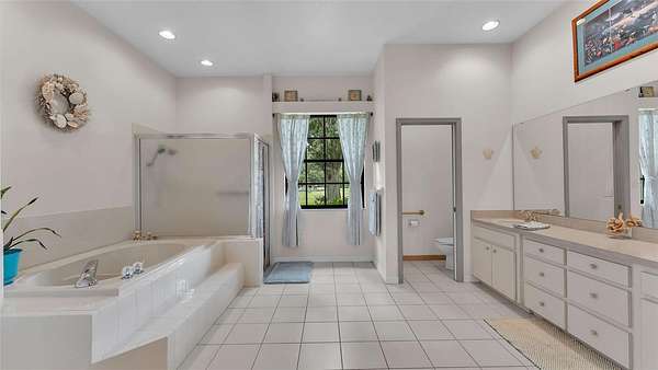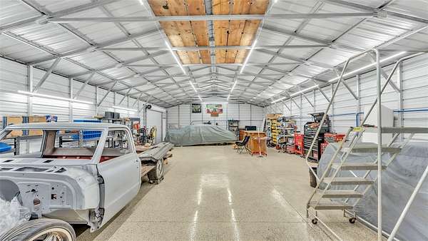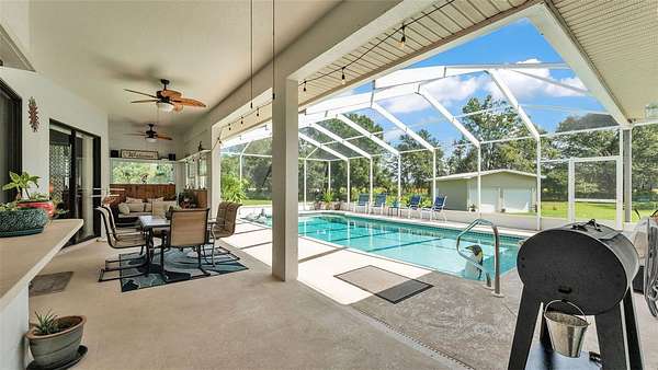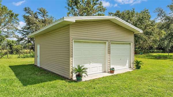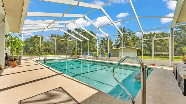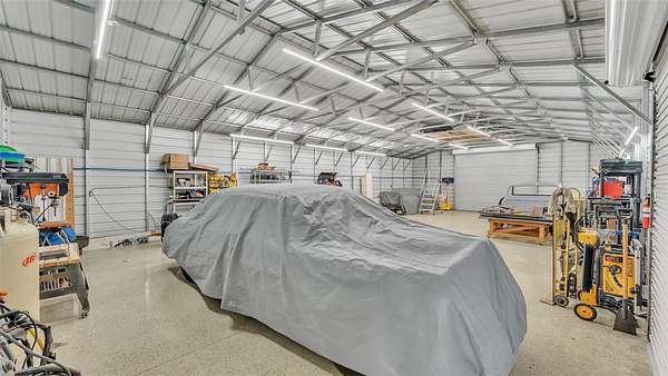 Step outside to your screened-in pool oasis perfect for gathering and enjoying the Florida sun. Car enthusiasts, hobbyists, and those needing space for equipment will love the brand-new 30' x 55' workshop featuring 30-amp and 50-amp receptacles, epoxy flooring, and compressor lines run throughout. Additional storage includes new overhead shelving in the attached 2-car garage plus a separate detached 2-car garage.