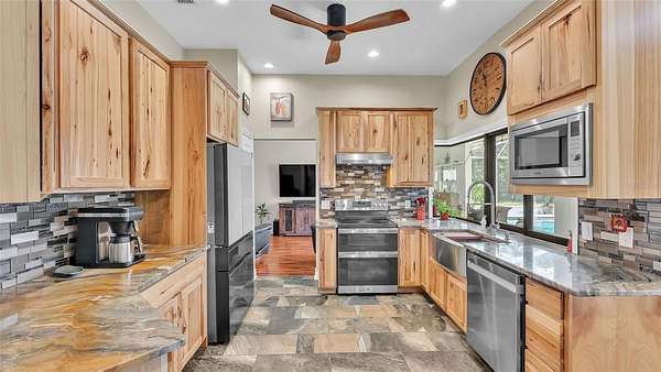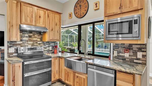 Experience the best of Florida living with this beautifully updated 3-bedroom, 2-bathroom pool home, perfectly situated on nearly 3 acres with NO HOA in Plant City. The open kitchen showcases stone countertops, beautiful wood cabinets, a new Zion sink, an oversized island ideal for entertaining, brand-new appliances, and updated flooring--all flowing seamlessly into the dining area with stunning views of the pool.