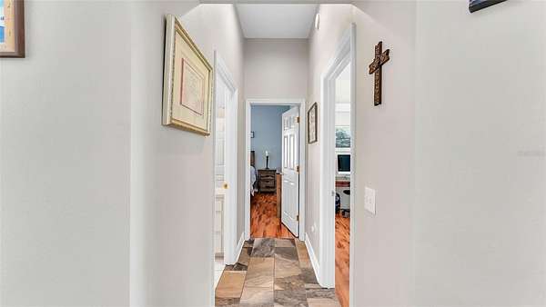 The split floor plan provides comfortable privacy, offering a spacious primary suite with direct pool access, while two additional bedrooms and a second full bath--also serving as a convenient pool bath--are located on the opposite side of the home.
