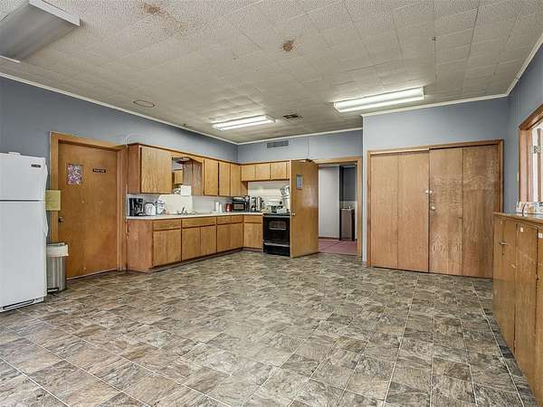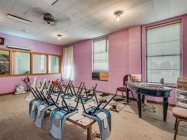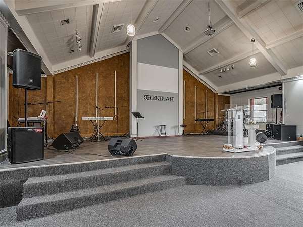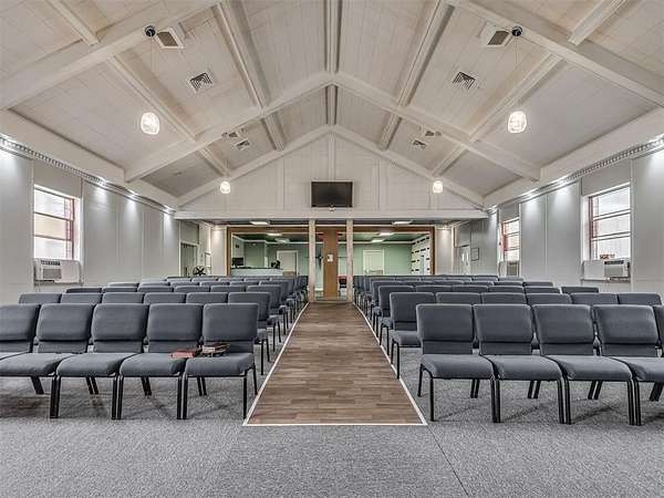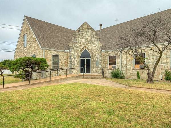 Step into opportunity with this expansive 26,274 square foot building on 1.57 acres in the heart of South Oklahoma City. Originally built in 1920, this former church offers timeless architecture with a gable roofline and a spacious layout ready to be reimagined. The property includes a large sanctuary, multiple meeting rooms, and a full basement. There are two full kitchens, one on the first floor and a larger one in the basement, each with its own dining area. A vintage basketball court adds character and potential for recreational or community use, though it will require updates. An additional vacant lot is included, providing extra space for parking, expansion, or outdoor activities. The roof was replaced in 2020, and the structure rests on a solid slab foundation. The property is currently occupied by a church through November, and no furniture or inventory will remain. Located on a prominent corner in the Volz Addition, the site offers excellent visibility and accessibility. With its size, history, and adaptability, this property presents a unique opportunity for congregations, nonprofits, schools, event operators, or developers. Owner financing may be considered. Buyers should verify zoning and permitting for intended use.