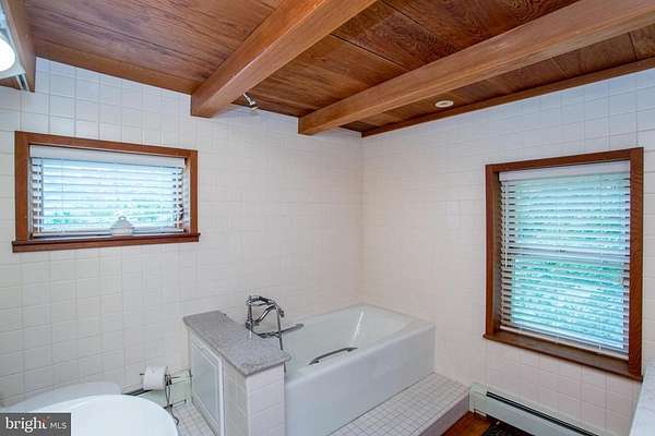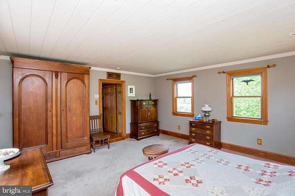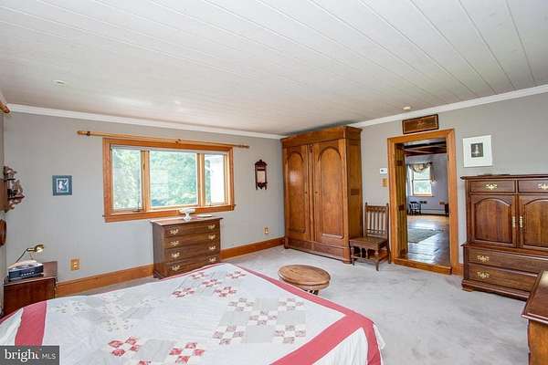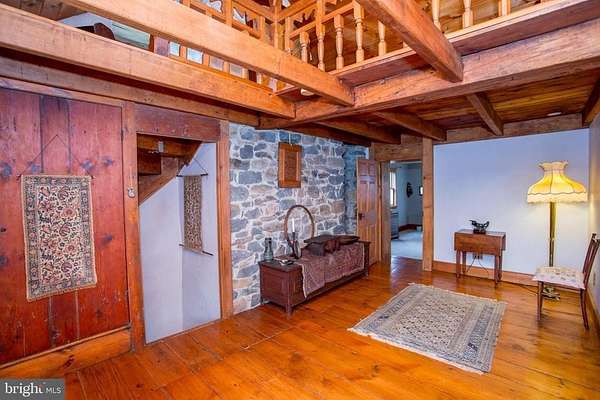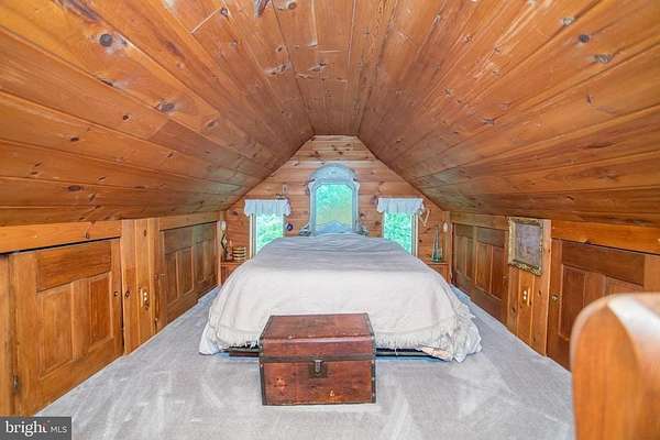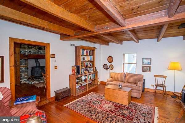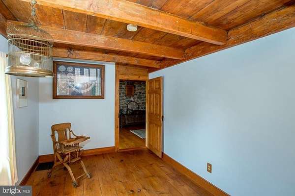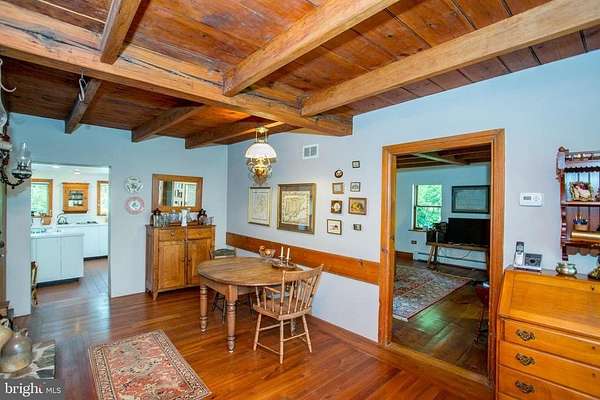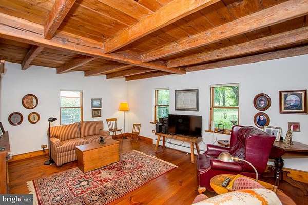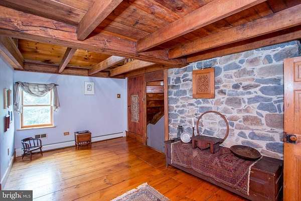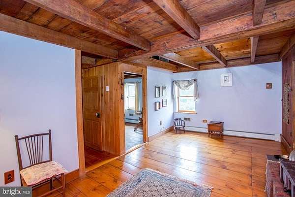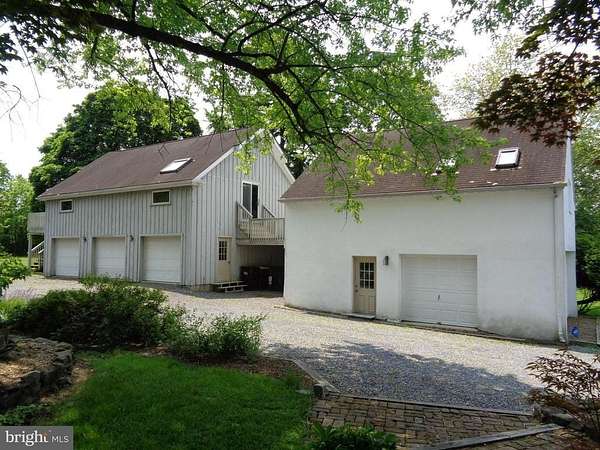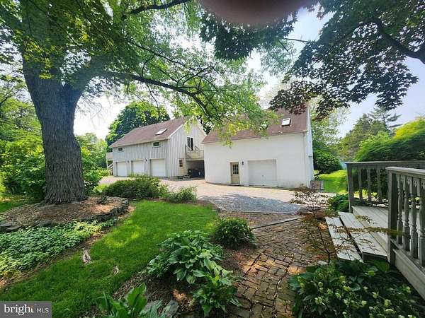 This historic Bucks County log and stone farmhouse is surrounded by perennial gardens and mature landscaping. It has 10.5 acres with 1,200' of road frontage. This unique property in Springfield Township, located 5.5 miles north of Lake Nockamixon, is equally suited for full-time residence or as a weekend retreat. The main 3 Bedroom, 2 Bath home, built circa 1860, has undergone additions and renovations to enhance the efficiency and comfort of the home while preserving much of the character of the original building. Some historic amazing features include original log walls, walk-in fireplace, and pie-shaped stairs to the second and third floor. In addition to the charming home, you will find two large outbuildings, consisting of 2131 square foot insulated garage and an office/workshop which includes an insulated workshop on the 25'x23' first floor with separate 100 AMP service panel, air conditioning and LP hot air heat, a garage door facilitates moving large objects in and out. The second floor houses a 25'x18' office with three large skylights and two smaller skylights in two smaller rooms designed to accommodate a bath and kitchenette, and the office opens onto deck connected to 2nd floor of 3 car garage. See Documents for a full home description writeup. Don't miss your opportunity to see this fabulous property and everything it offers.