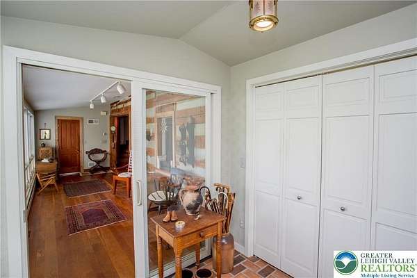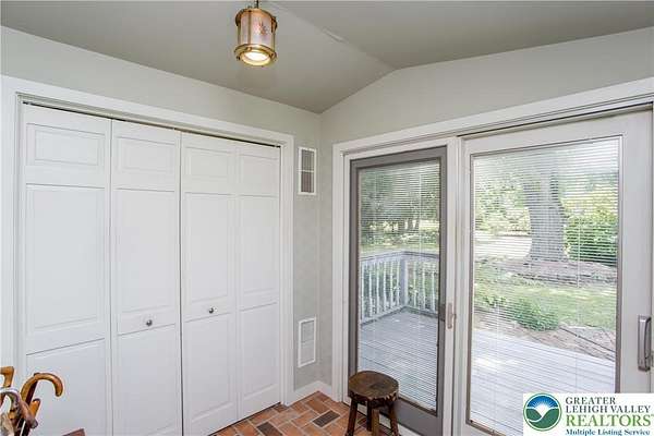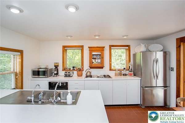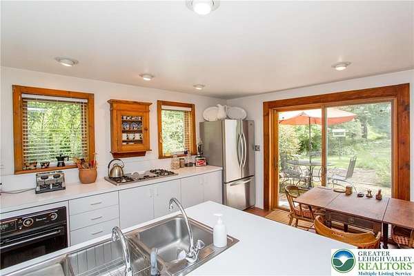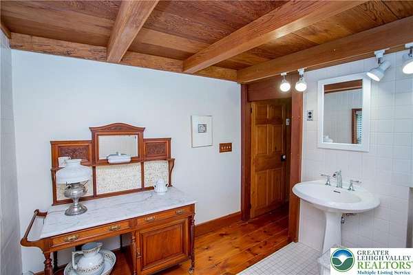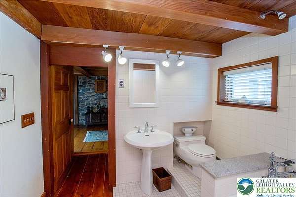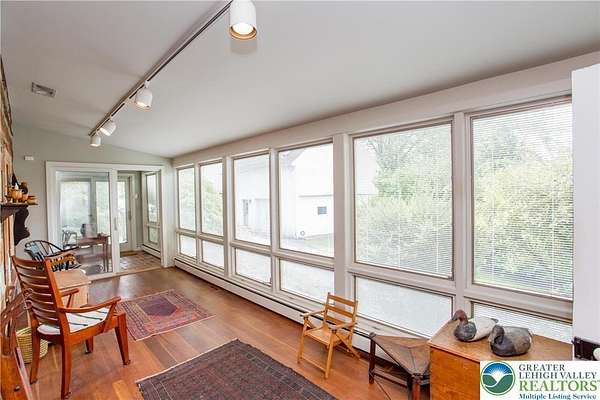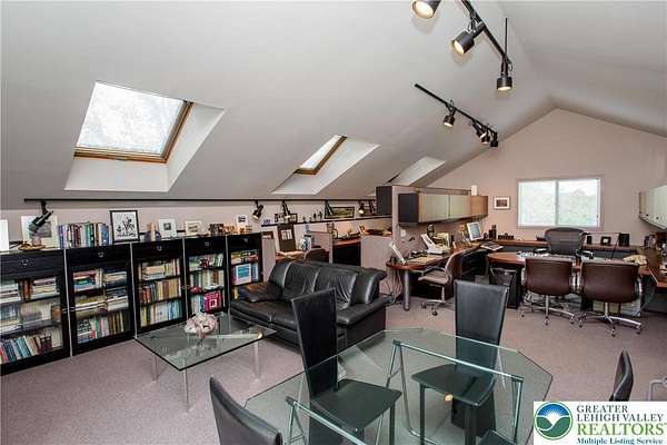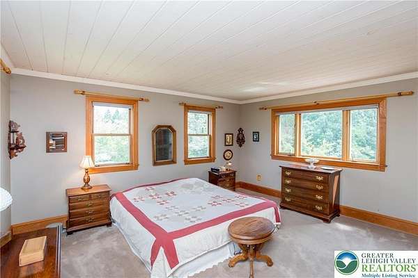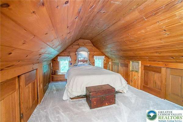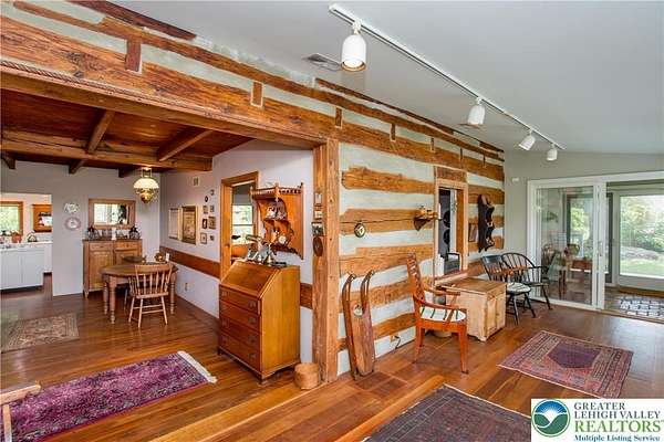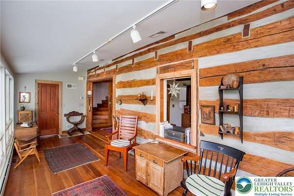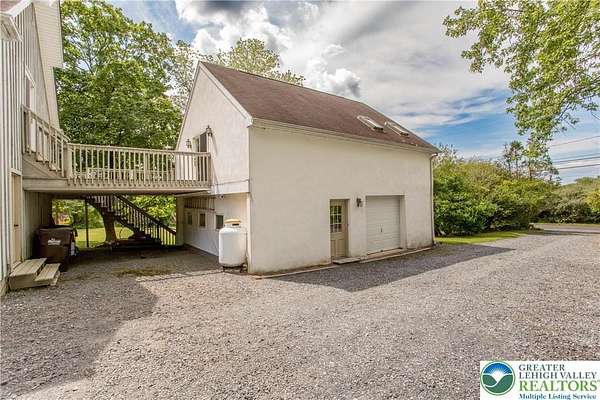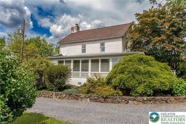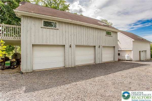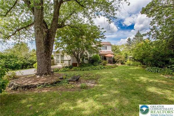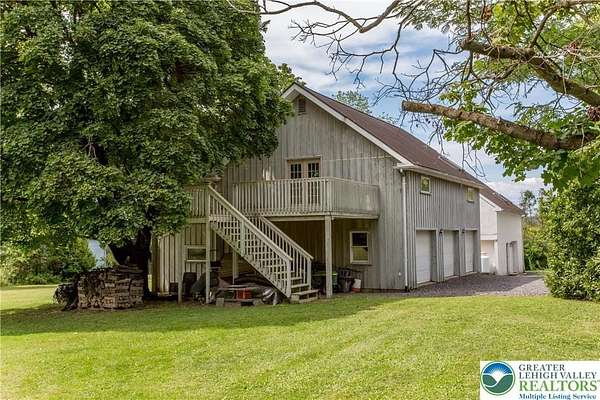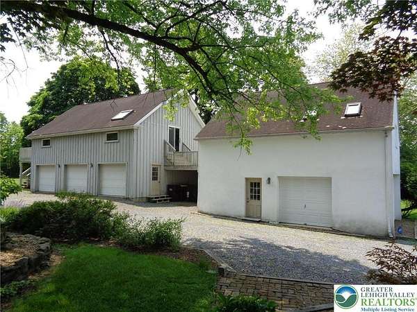 This historic Bucks County log and stone farmhouse is surrounded by perennial gardens and mature landscaping. It has 10.5 acres with 1,200 of road frontage. This unique property in Springfield Township, located 5.5 miles north of Lake Nockamixon, is equally suited for full-time residence or as a weekend retreat. The main 3 Bedroom, 2 Bath home, built circa 1860, has undergone additions and renovations to enhance the efficiency and comfort of the home while preserving much of the character of the original building. Some historic amazing features include original log walls, walk-in fireplace, and pie-shaped stairs to the second and third floor. In addition to the charming home, you will find two large outbuildings, consisting of 2131 square foot insulated garage and an office/workshop which includes an insulated workshop on the 25x23 first floor with separate 100 AMP service panel, air conditioning and LP hot air heat, a garage door facilitates moving large objects in and out. The second floor houses a 25x18 office with three large skylights and two smaller skylights in two smaller rooms designed to accommodate a bath and kitchenette, and the office opens onto deck connected to 2nd floor of 3 car garage. Don't miss your opportunity to see this fabulous property and everything it offers.