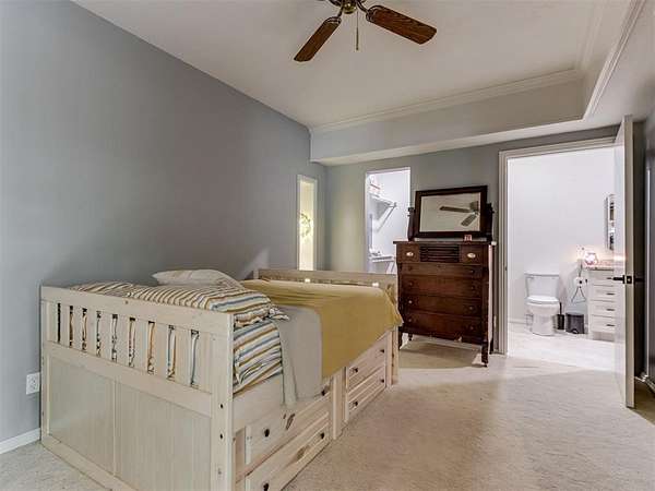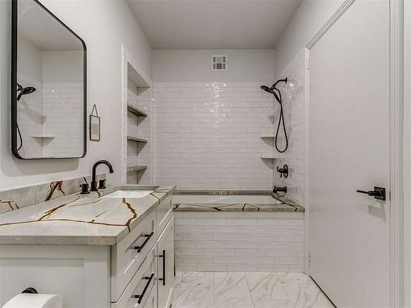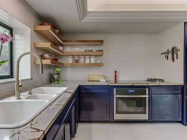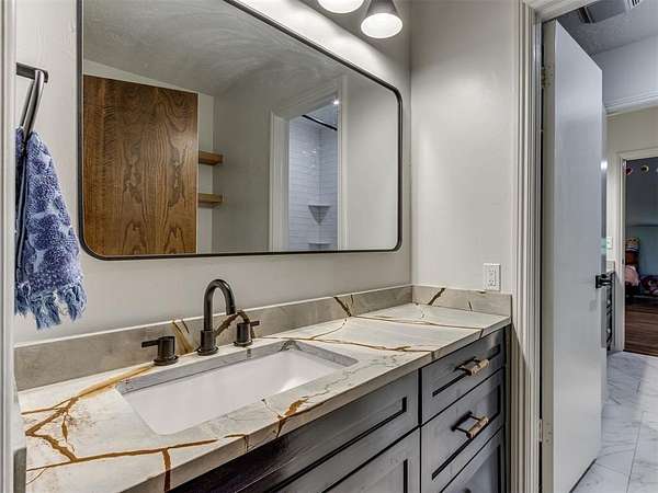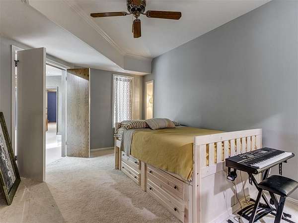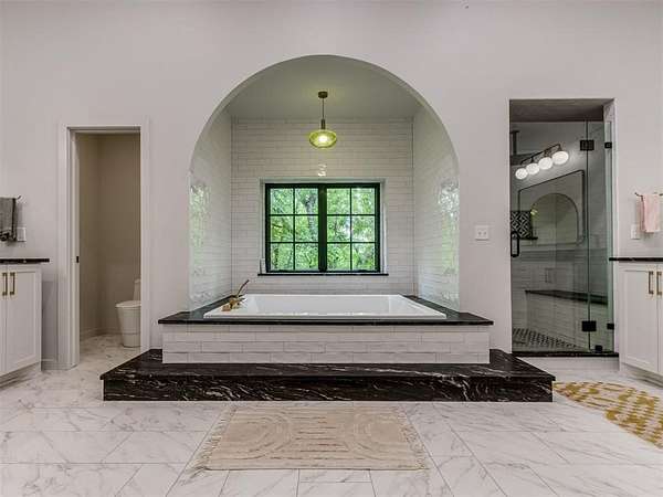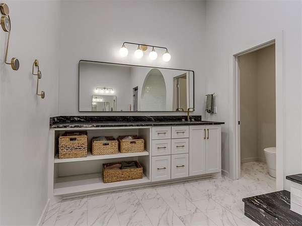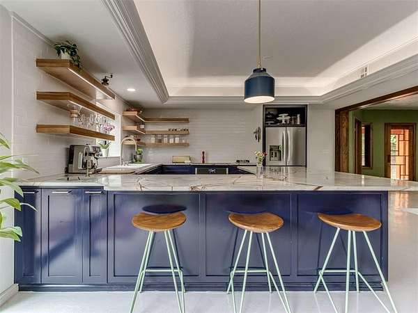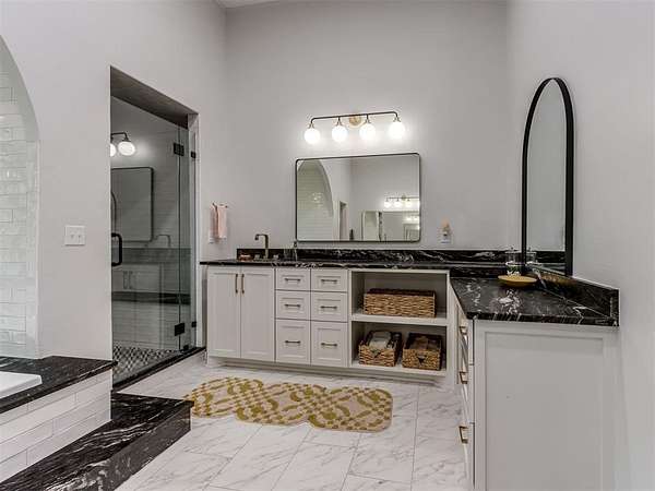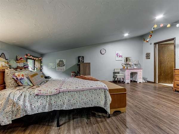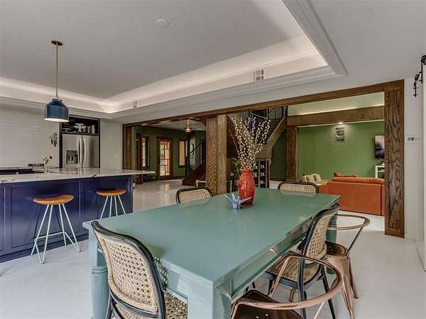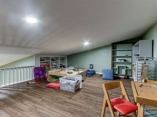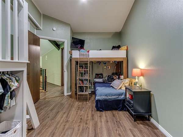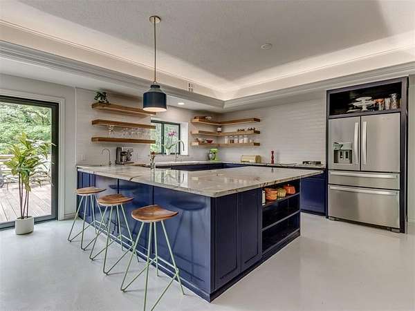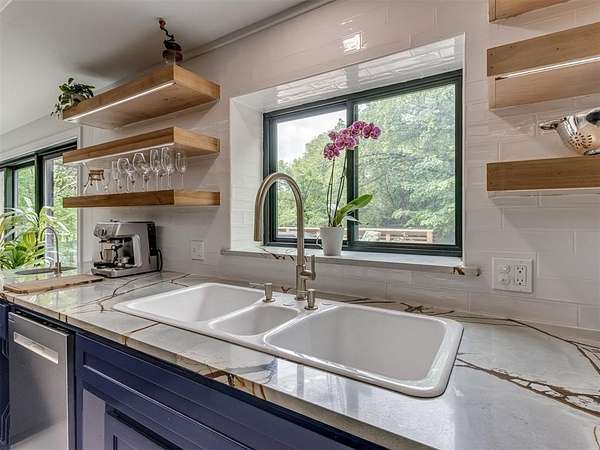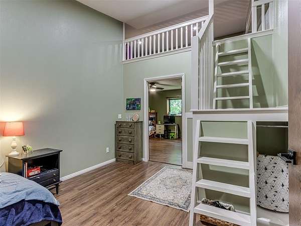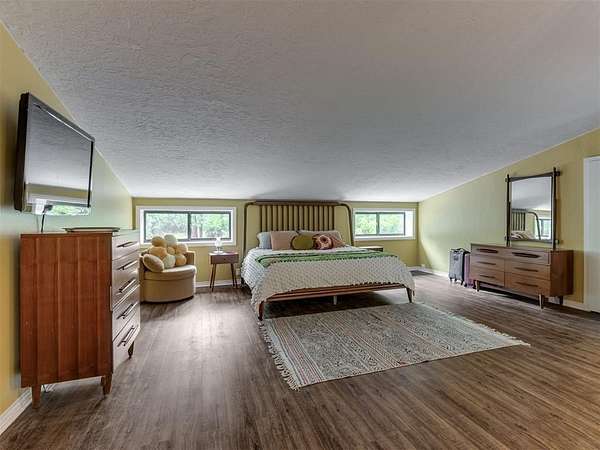 Price Reduced, Plus sellers are contributing $20,000.00 in concessions towards landscaping, closing costs, or rate buy down, buyers choice! Amazing renovation surrounded by a lush wooded 5 acre lot, with the feeling of seclusion and privacy yet still in the heart of OKC. Such a fun yet elegant style of Mid century modern, Spacious home with impressive soaring ceilings and amazing views. The unique split staircase at entry, will lead you up to spacious primary bedroom with large walk in closets and a truly breathtaking spa like en suite bathroom. At the other side of staircase/open hall balcony you will find two other large bedrooms with walk in closets and are connected by a rare true jack and jill style bathroom complete with 2 sinks & vanities, 2 separate toilets and tons of storage with shared bathtub/shower. There is also a "walk-through" room that leads into one of the bedrooms, (3rd upstairs bedroom option or office) from here you can climb up to the loft that makes the perfect fun game room for the kids. Head down either side of split staircase and you will find yourself on the landing that overlooks the substantial great room with an amazing view of the lush wooded back yard, framed in floor to ceiling Pella windows. This tremendous living space opens up to luxurious kitchen and dining area with gorgeous quartzite countertops, large pantry, ample storage and natural light. Off the dining room you can step outside onto a large deck that is perfect for gatherings and entertaining. Downstairs to the left of front door entry, another bedroom with its own full bath and additional entrance to/from the hall, perfect for guests. To the right of entry another large bonus room, perfect for den, office or library. Additionally there is another room downstairs with indoor storm shelter/safe room. This space can also be used for storage, workshop, or hobby room.